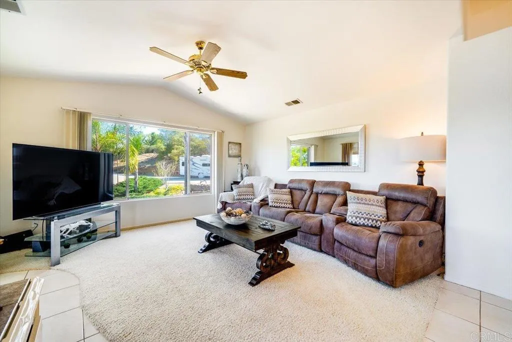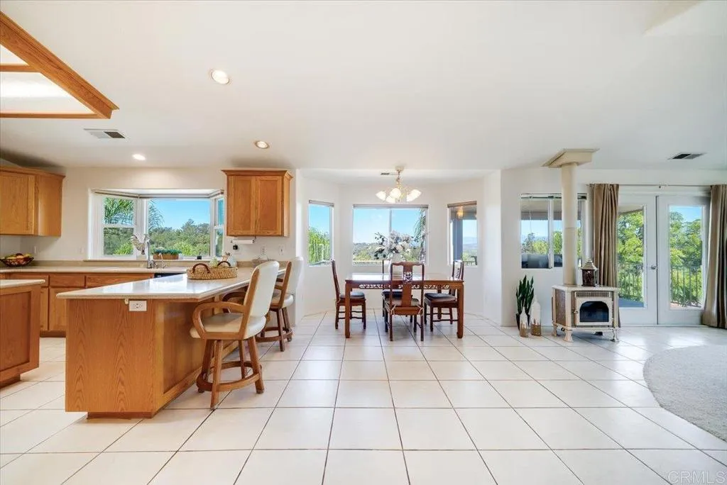 Why settle for crowds when you can be less than 10 minutes to Poway on over 5 acres in West End Ramona? Walk to Mount Woodson Golf Course, Potato Chip Rock and the Grassland Preserve with hawks and raptors. Panoramic views and seasonal creek in a cul de sac setting, RV parking, 2 RV dumps, fish pond and waterfall, paid solar, dog run, 40' C train container. This split-level custom home features an open floor plan, tons of light, huge island kitchen for entertaining with vaulted ceilings and views, 5 burner gas stove, single light French doors and architectural details. Luxurious primary suite with views, jetted tub and separate shower.
