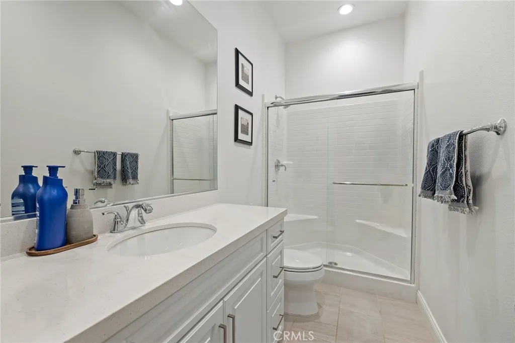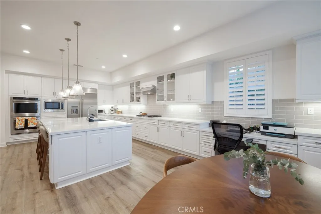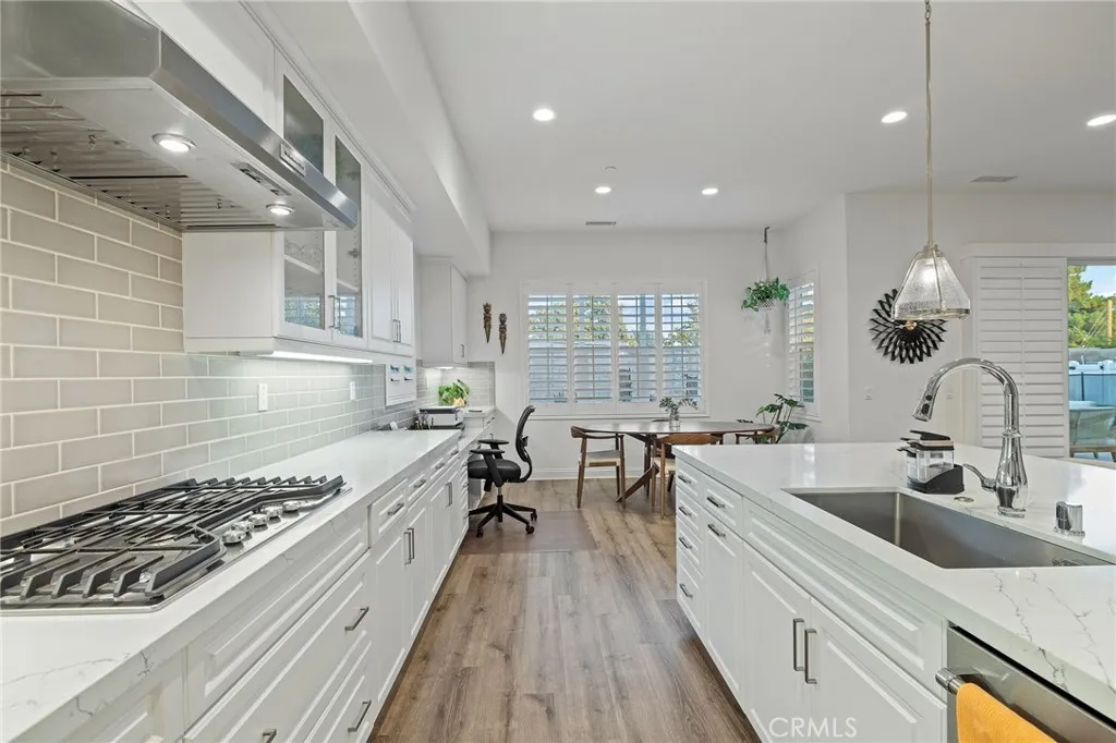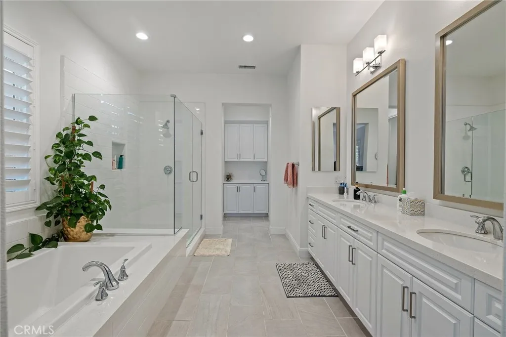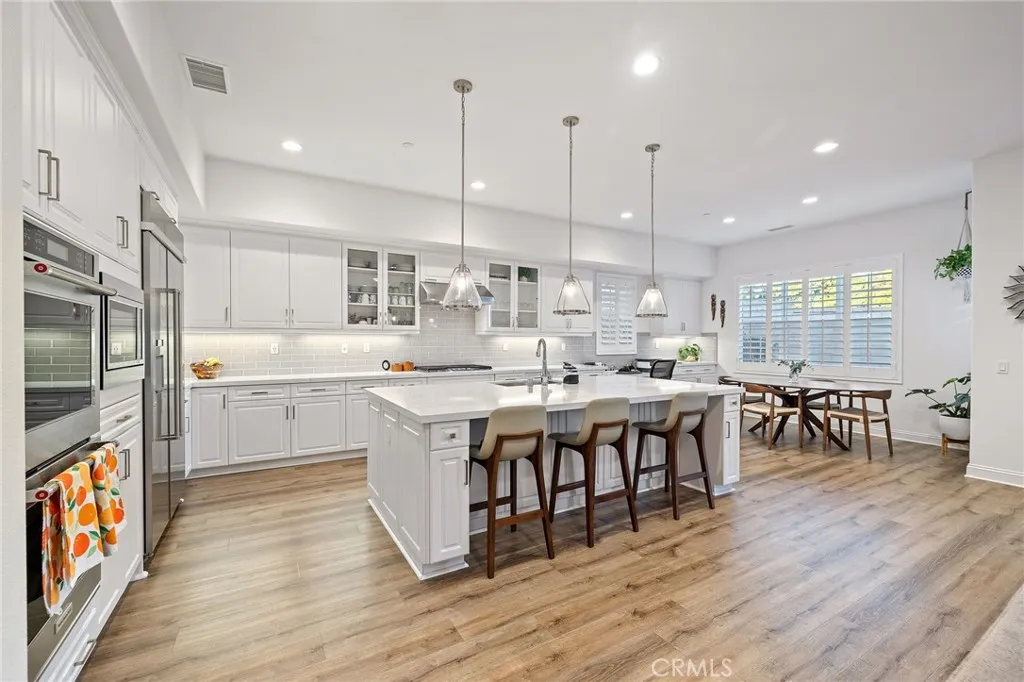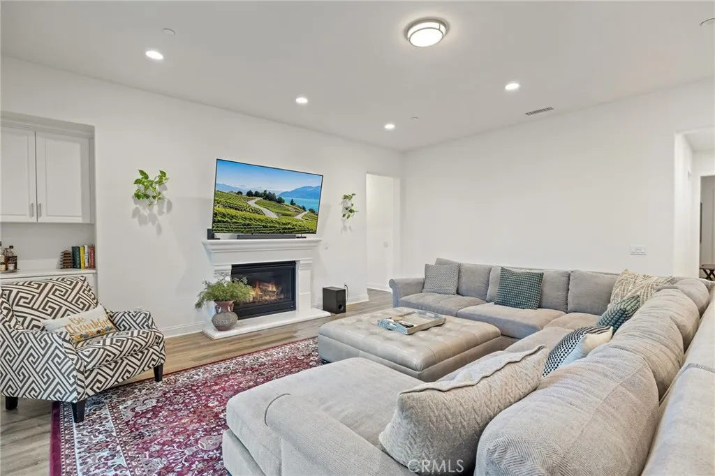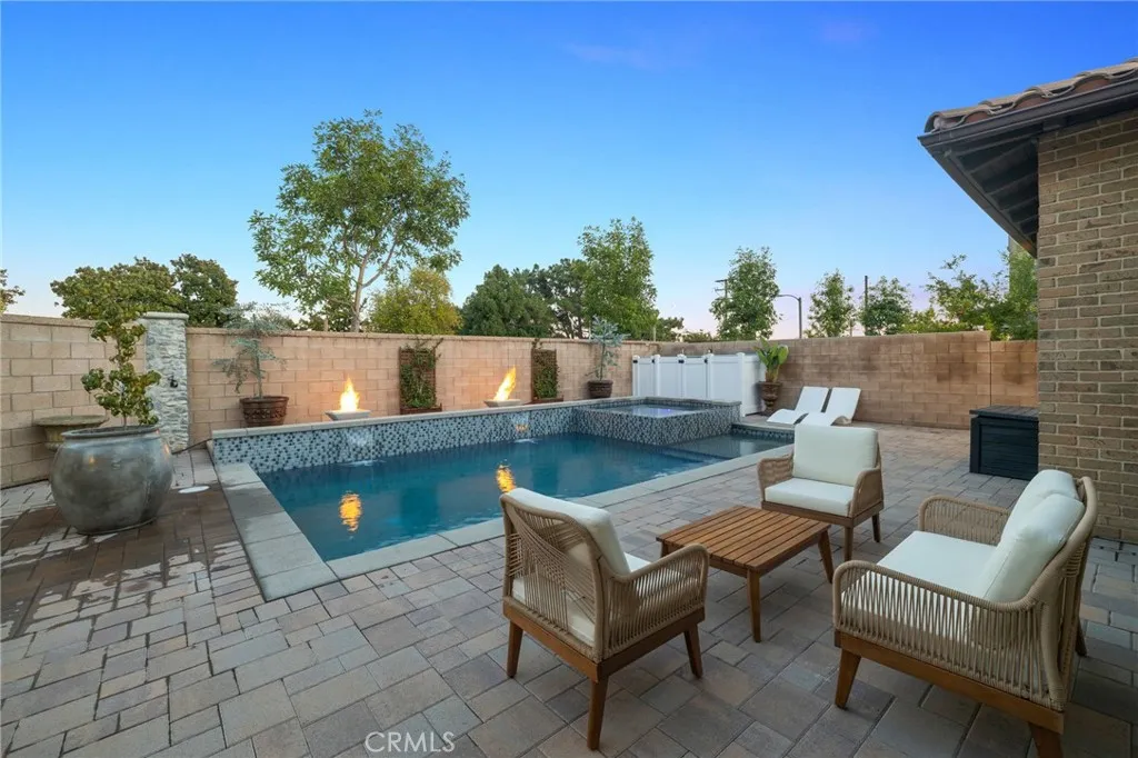 Located on a quiet cul-de-sac in the desirable Silver Ridge Community, this stunning single-story pool home built by Manning Homes in 2021 blends modern comfort with timeless style. Featuring 3 bedrooms, 2.75 bathrooms, and 2,581 sq. ft. of living space, the open layout includes a great room with recessed lighting, plantation shutters, and a cozy fireplace that opens to the backyard retreat. The kitchen showcases Avanza quartz countertops, Grey Tile backsplash, pendant lighting, and stainless-steel KitchenAid appliances including a built-in refrigerator and double oven. The primary suite offers a walk-in closet with custom built-ins and a spa-like bath with soaking tub, dual sinks, and separate shower. Additional highlights include luxury vinyl plank flooring, Granitex epoxy garage flooring, central A/C and heating, double-pane windows, tankless water heater, motion sensor hot water, 13 paid solar panels, and a water softener system. The beautifully landscaped backyard features a Pebble Tec saltwater heated pool and spa with waterfalls, perfect for entertaining. Located in the highly rated Alta Loma School District and Chaffey Joint Union High School Districtassigned schools include Deer Canyon Elementary (7/10), Vineyard Junior High (8/10), and Los Osos High School (9/10), one of the most sought-after schools in the area. Conveniently near parks, shopping, dining, and easy 210 Freeway access.
