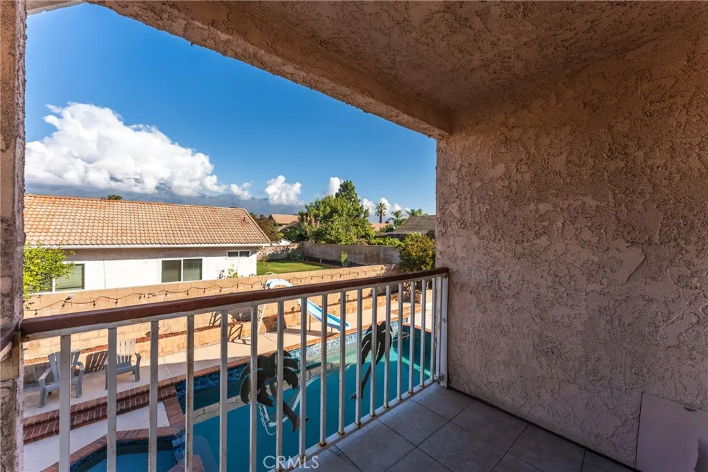Welcome to 10438 Palo Alto St a beautifully updated home that blends comfort, style, and an exceptional location. Sitting on a generous lot with potential RV parking, this home has been thoughtfully updated throughout. Step inside to discover new vinyl plank flooring and tile throughout the main living areas, kitchen, and bathrooms. The fully remodeled kitchen showcases elegant quartz countertops, a modern backsplash, new recessed lighting, and contemporary finishescreating an inviting space ideal for cooking and entertaining. Both bathrooms have been tastefully renovated, and the homes cozy fireplace adds warmth and charm to the living room.Upstairs, the primary bedroom boasts stunning mountain views and a private balconya perfect spot for your morning coffee. The en-suite area includes a convenient vanity for added functionality. Step outside into your own private oasis. The recently refreshed heated pool and spa feature new tile, resurfaced lining, a new pump, and vibrant LED lighting. The backyard offers low-maintenance concrete hardscaping and lemon trees, perfect for enjoying fresh fruit right from your backyard. A spacious front pergola- style patio provides additional outdoor living space for relaxing or hosting gatherings. Major improvements include a new A/C system and water heater installed just one year ago, ensuring comfort and peace of mind for years to come. Located in a highly desirable Rancho Cucamonga neighborhood, this home is close to top-rated schools, shopping, dining, parks, and entertainment. The community is known for its quiet, well-maintained str