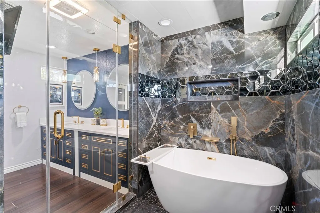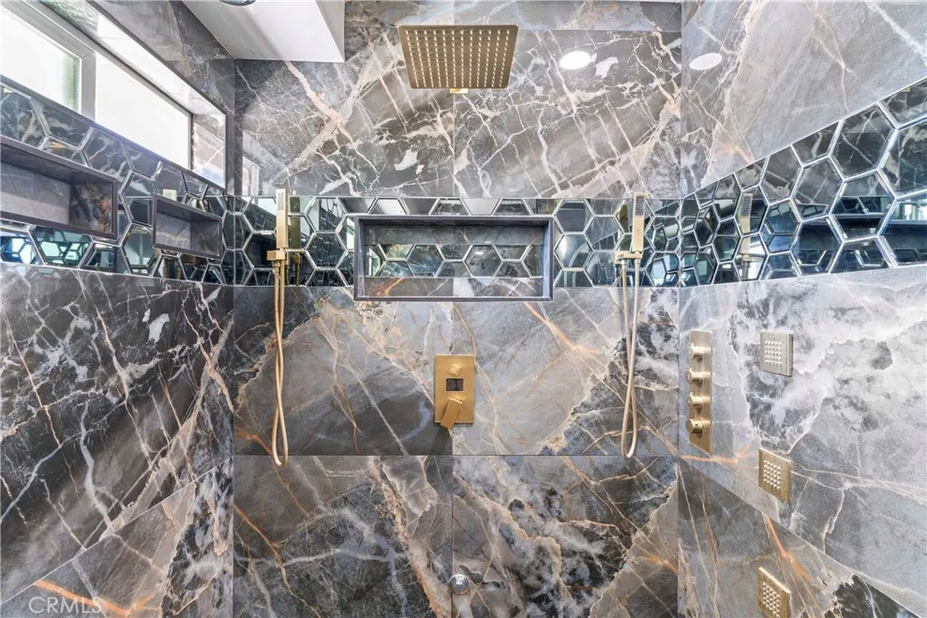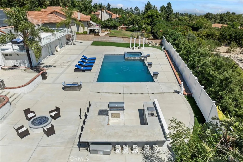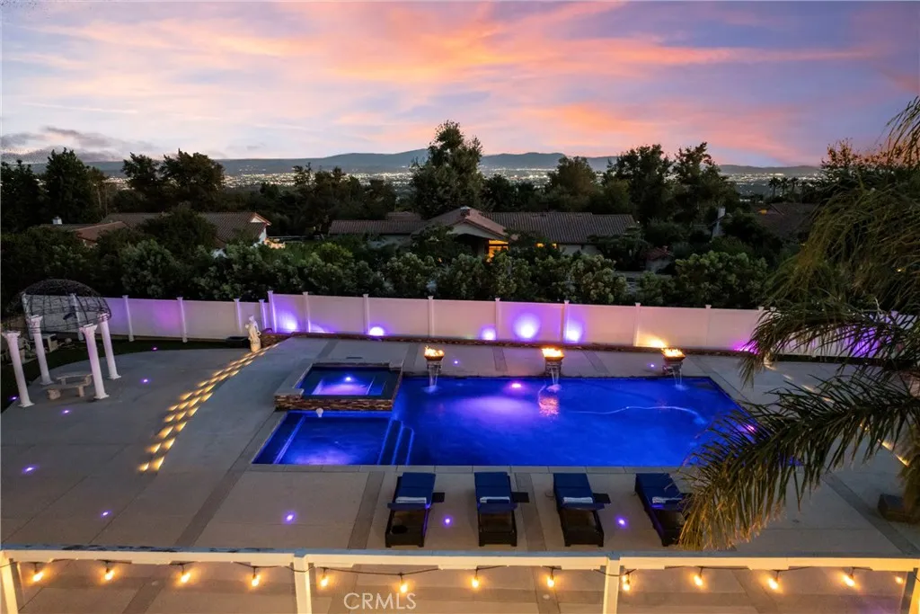 Experience elevated living in this exquisitely remodeled smart home perched in the highly sought-after Deer Creek neighborhood. With breathtaking panoramic city lights views, this luxe estate blends cutting-edge technology with resort-style amenitiesperfect for both entertaining and everyday comfort. Completely renovated from top to bottom within the last four years, the home showcases designer finishes including quartz countertops with a waterfall island, smart switches, upgraded appliances, crown molding, and undercabinet lighting. Including five en-suites, the master suite is a true retreat, featuring a spa-like wet room with a freestanding tub, bidet, multiple showerheads, and dual steam units. Step outside into a backyard oasis where you will find the Olympic-sized black-bottom pool and spa dazzle with fireballs and waterfalls. The expansive built-in barbecue and outdoor kitchen includes a flat-top grill, refrigerator, ice chest, and wraparound countertopsall set up for effortless hosting with natural gas connections. Enjoy evenings around the fire pit or unwind in the two-story pool house with A/C and laminate wood flooring. Other standout features include: Solar panels with a new electrical panel, dual A/C units, digitally controlled outdoor lighting with multicolor options, smart home automation with Alexa control for garage, lighting, HVAC, and more, a three-car garage with overhead storage, a separate second septic system for the lower level, dramatic vaulted ceilings, LED touchscreen mirrors, and a striking glass chandelier in the entry. From thoughtful details t