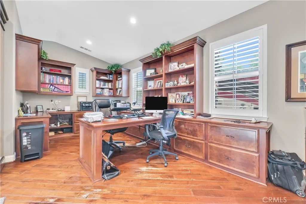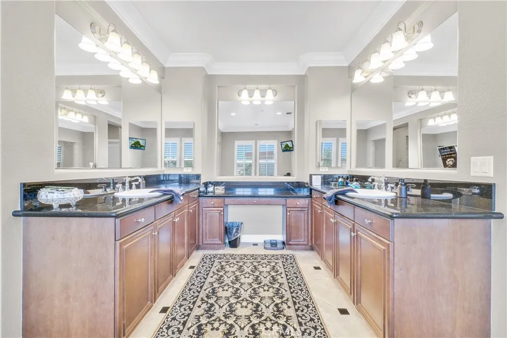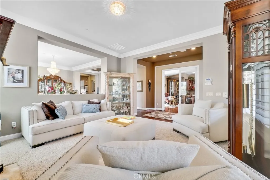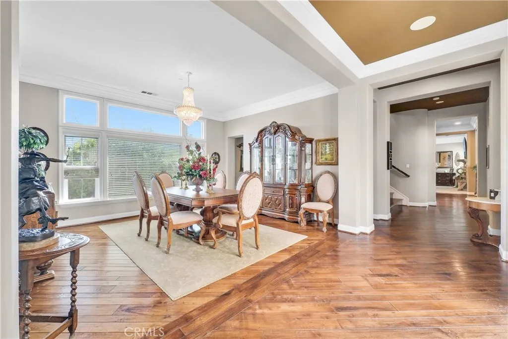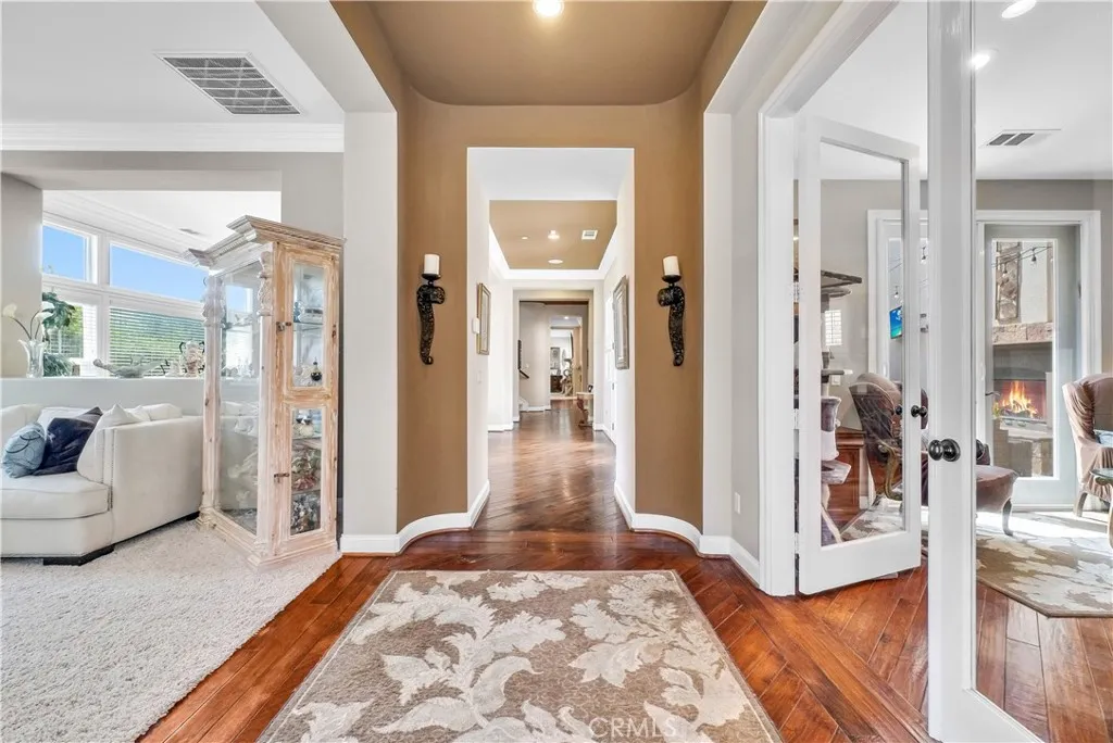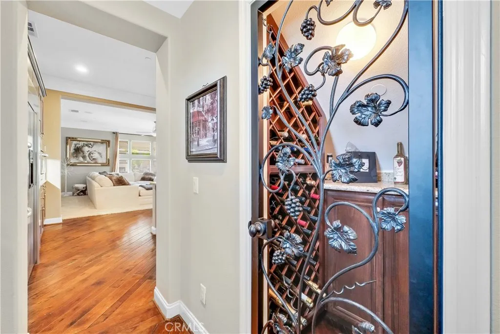 Welcome to Carriage Manor and currently the largest estate available in the beautiful City of Rancho Cucamonga, this magnificentresidence is nestled on a quiet cul-de-sac in the coveted Bridlewood Estates community. Set on overa half acre lot, this property boasts 6 bedrooms, 6 baths, and multiple entertainment areas, offering over 6,690 square feet of unparalleled grandeur.As you drive past the private gates, you are greeted by impeccably landscaped grounds that elevate the home's exceptional curb appeal. Stepping through the custom front door, youll discover an equally stunning interior showcasing the finest finishes and meticulous attention to detail. From soaring ceilings, exquisite millwork, and rich hardwood floors, every element has been thoughtfully designed.The kitchen, a culinary enthusiasts dream, with custom cabinetry, natural stone countertops, a butler's pantry AND a wine vault.It seamlessly opens to the family room, offering an open-concept living space. Exquisite crown molding, and trey ceilings enhance the dining rooms refined atmosphere, ideal for intimate celebrations. Afterward, enjoy nightcaps in the sophisticated wine room. The mainfloor is complete with one bedroom with an en suite bath, convenient for outof town guests.Upstairs you'll find your massive primary suite featuring a large sitting area, fireplace, and walk in closet. Outdoors you can enjoy entertaining guests in the screened-in porch or private courtyard featuring a fireplace,you can truly enjoyyouroutdoorspace all year long. Thebackyard is complete with a pool and spa, fire pit, a half co