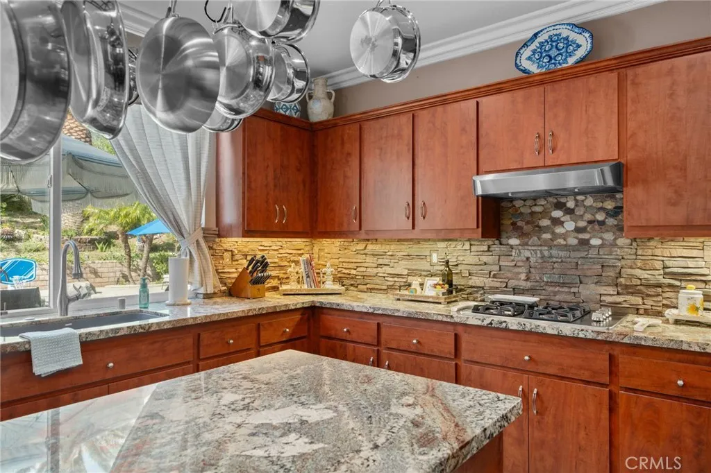 Looking for THE Backyard for hard to find privacy and entertaining that feels like a resort? This is it! Located in the desirable Brentwood development, this 2,707 sq. ft. residence is the one buyers wait for. The curb appeal, front porch and wrought iron double doors create a grand first impression that set the tone for whats inside. Step into the formal living/dining room and experience a home that is impeccably maintained and completely move-in ready. With flex space for many alternative potential uses. Wood and tile flooring throughoutno carpet anywhere. Timeless plantation shutters frame every window. The kitchen is well designed for both everyday living and entertaining, featuring: Granite countertops, Warm wood cabinetry, Double ovens, Built-in stovetop and a pantry with pull out shelves. The large family room has extra space for a potential office, gym, play area or just enjoy the spaciousness. A huge laundry room with extra storage and a guest bathroom are downstairs. Upstairs, all four bedrooms provide privacy and separation from the main living areas. The grand primary suite is highlighted by a dramatic picture window with mountain views a daily reminder of why Etiwanda living is so desirable. The three-car garage offers abundant storage, epoxy floors and insulated doors. There is extra parking for Rv, Boat or extra vehicle on the right side of the home. THEN you step outside for the showstopper. A large covered patio with 3 ceiling fans invite year-round entertaining. A sparkling pool becomes the centerpiece by dayand the artificial turf offers low maintenance