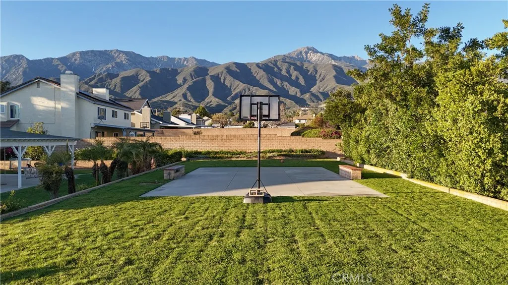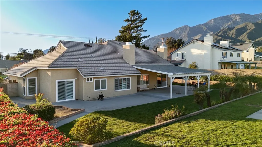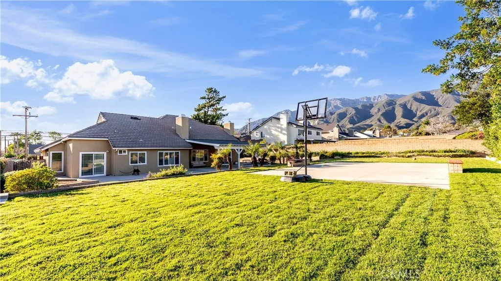 Foothill living with mountain views on nearly half an acre. Positioned in one of Rancho Cucamongas most desirable foothill neighborhoods, where larger parcels and the backdrop of the San Gabriel Mountains create a setting that is increasingly hard to find. Set against the scenic foothills of the San Gabriel Mountains, this spacious two-story residence offers approximately 2,881 square feet of living space with six bedrooms and three bathrooms on an expansive 20,492 square foot corner lot. Large windows and the homes elevated foothill setting allow natural light and mountain views to become part of the everyday living experience. Inside, the open floorplan features soaring cathedral ceilings, crown molding, recessed lighting, and multiple living areas designed for both entertaining and comfortable daily living. The kitchen offers quartz countertops, a breakfast counter/bar, butlers pantry, and generous cabinetry while opening directly to the family room where a fireplace creates a warm gathering space. The main level includes a spacious primary suite positioned to capture views of the surrounding foothills, complete with walk-in closet, dual sinks, soaking tub, and separate walk-in shower. Additional bedrooms provide flexibility for guests, family, or workspace. Upstairs, a loft and additional living areas create versatile space for a home office, recreation room, or secondary living quarters. Outdoors, the nearly half-acre corner parcel provides scale rarely found in the area, complemented by a covered patio, brick fencing, and mountain-backed surroundings that create a pea