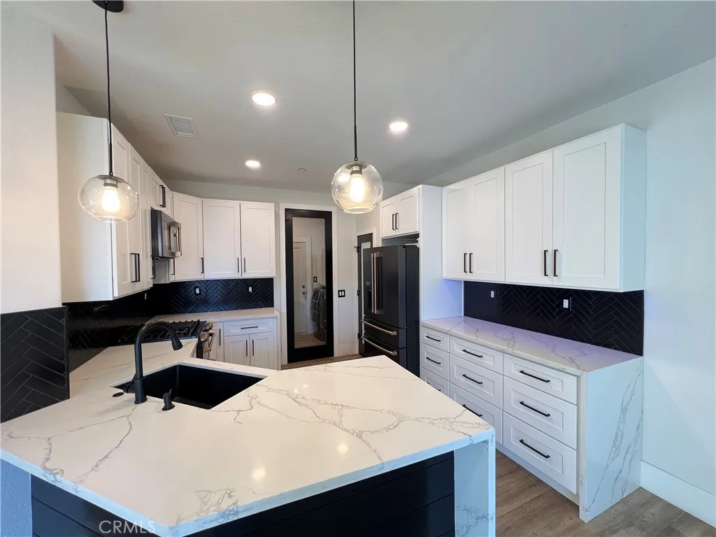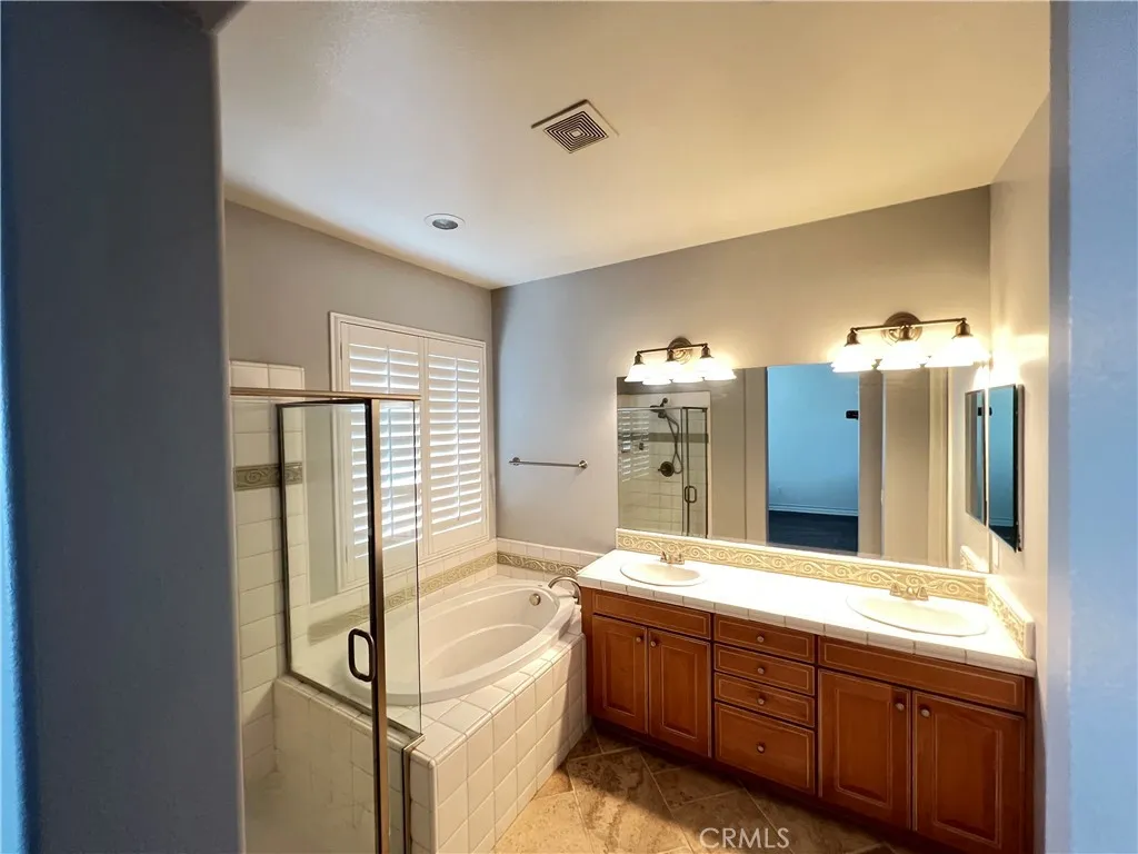 Welcome to TRAILS AT ETIWANDA unit 108, this beautifully upgraded residence located in a security gated community of Rancho Cucamonga. Offering 3 spacious bedrooms and 2.5 baths across 1,670 SQFT, this home combines modern style with everyday comfort. Features included 9-foot ceilings on both levels and 8-foot doors throughout, creating an open and luxurious feel. Recent upgrades include kitchen cabinets, counters, back splash, flooring, and upgraded appliances (fridge, microwave, dishwasher, washer / dryer, and stove). The gourmet kitchen showcases upgraded countertops, a walk-in pantry, and ample storage. the primary suit offers a large walk-in closet, dual sinks, a soaking tub, and a separate shower. the private backyard is designed for low-maintained outdoor living and entertaining. Close to Victoria Gardens, top-rated schools, shopping, and dining- this move-in ready home is the perfect blend of comfort and convenience.