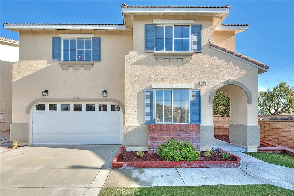 Welcome to 7359 Correspondence, a beautifully appointed home located in the highly sought-after gated community of Independence in Rancho Cucamonga. This spacious residence offers a perfect blend of style, comfort, and functionality. Step inside to find a bright and open layout featuring granite countertops and tile flooring throughout the kitchen and living room, creating a clean and modern feel. The home includes a built-in office on the first floor, complete with its own separate entryideal for remote work, a studio, or guest accessibility. Upstairs, youll find the conveniently located laundry room tucked into a private inside-corner space for added practicality and ease. Bedrooms, hallway, and staircase flooring has been removed giving buyers the opportunity to choose their own flooring or request a flooring credit! The expansive lot is a true outdoor retreat. Enjoy a generously sized backyard featuring a covered patio, a charming fountain, and a pergola with a built-in fireplaceperfect for entertaining, relaxing, or enjoying warm Southern California evenings. Located in a secure gated community and close to shopping, dining, and top-rated schools, this home offers exceptional value and lifestyle.