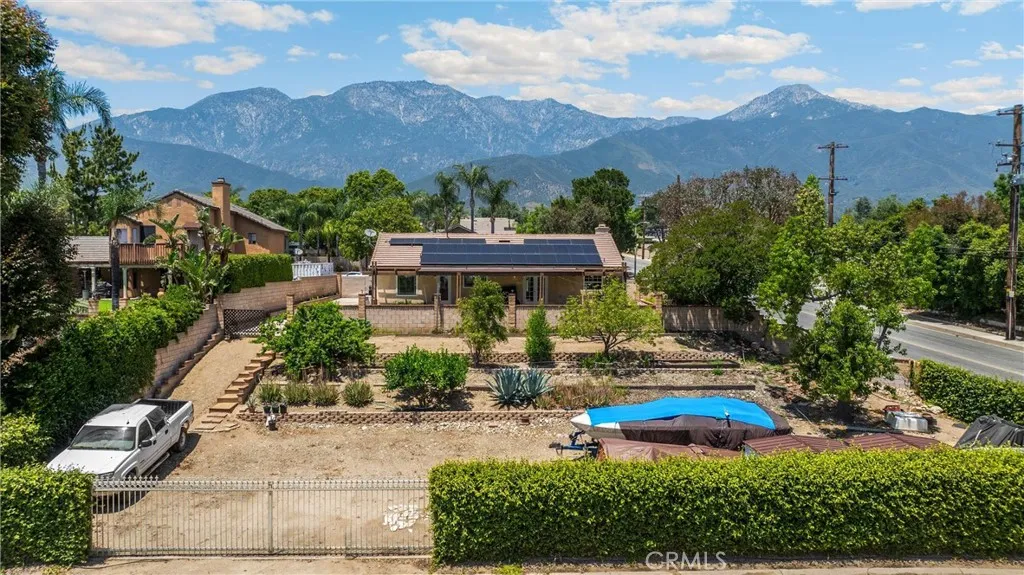 Discover the perfect blend of lifestyle, flexibility, and value in this beautifully maintained Alta Loma home, ideally located in the iconic Thoroughbred holiday lights neighborhoodknown for its festive spirit and strong community feel. Set on a spacious half-acre corner lot, this unique property offers owned solar panels for energy efficiency and a versatile 600 sq ft garage conversion with a private entranceideal for guest quarters, rental income, or multigenerational living. Prefer parking? It can easily be converted back into a traditional garage. Enjoy direct bridle trail access on this horse property, along with a lush yard featuring a tiered garden with fruit trees. A sparkling pool, spa, and a covered patio sets the perfect scene for relaxing or entertaining. Inside, vaulted ceilings, a cozy fireplace, walk-in pantry, and a spa-like primary suite with soaking tub and separate shower bring everyday comfort and charm. Recent improvements include a newly installed seepage pit and completed fumigation, offering added peace of mind. With room to build a detached ADU on the lower level for ultimate privacy, this Alta Loma gem offers flexibility to match your visionnow and for years to come.