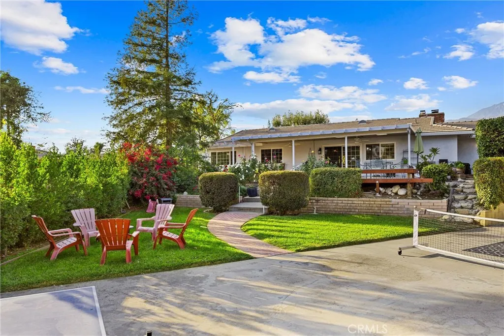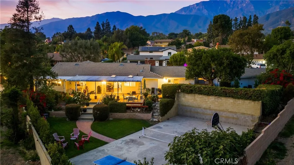Charming Single-Story Ranch Home with Stunning Views, Sports Court, and Endless Possibilities! Welcome to this beautifully maintained single-story ranch home that perfectly blends comfort, functionality, and potential. Situated on a -acre horse property with the bridle trail running conveniently along the side, this home offers a rare combination of country charm and modern amenities. Enjoy mountain views from the front and sparkling city light views from the backyard, providing the best of both worldspeaceful scenery by day and a twinkling skyline by night. Step inside to find hardwood floors throughout and upgraded vinyl flooring in the master, creating a warm and inviting atmosphere. The indoor laundry room adds convenience, while the three-car garage with RV parking provides ample space for vehicles, toys, and storage. The home features a tile roof with brown shake detail and includes an in-ground spa with cover, perfect for relaxing evenings under the stars. Outdoors, discover your own sports court, complete with basketball, tennis, and pickleballideal for recreation and entertaining. The large backyard also offers room to build an ADU or a pool, allowing you to customize the property to fit your lifestyle. Enjoy your personal mini orchard with avocado, fig, lemon, lime, peach, Santa Rosa plum, and apricot trees, plus a raised garden bed ready for your favorite vegetables and herbs. Whether youre looking for a peaceful retreat, an equestrian haven, or a home with expansion potential, this property delivers exceptional value and endless opportunity.