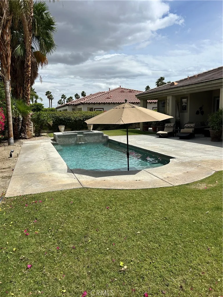 Enjoy breathtaking views of Mount San Jacinto, San Gorgonio, and the Little San Bernardino Mountains from this stunning Spanish Mediterraneanstyle residence, perfectly positioned on a quiet cul-de-sac within the prestigious gated community of La Terraza at Monterey Estates. Pride of ownership shines throughout this meticulously maintained home, thoughtfully upgraded and lovingly cared for over the past 16 years. Now offering a rare opportunity due to downsizing, this residence presents a chance to own in one of Rancho Mirages most sought-after communities. The expansive floor plan features five bedrooms, including a luxurious primary suite and a secondary primary suite, plus three additional bedrooms (tax records reflect four bedrooms and 3.5 bathrooms; the office is currently utilized as a fifth bedroom). A gated courtyard entry welcomes you into a private oasis, where a sparkling pool creates the perfect setting for relaxing or entertaining under the desert sun. Designed with both comfort and entertaining in mind, the home offers two fireplaces, a spacious great room with wet bar, formal living and dining areas, and in-home surround sound. The gourmet kitchen is appointed with elegant cabinetry, marble countertops, a butlers pantry, and generous storage throughout. The primary suite delivers a spa-inspired retreat, complete with an oversized walk-in shower and a soaking tub designed for ultimate relaxation. Additional highlights include a two-car attached garage with two extra ovens and a full-size refrigerator, a Sub-Zero freezer in the laundry room, and a built-in Jenn-
