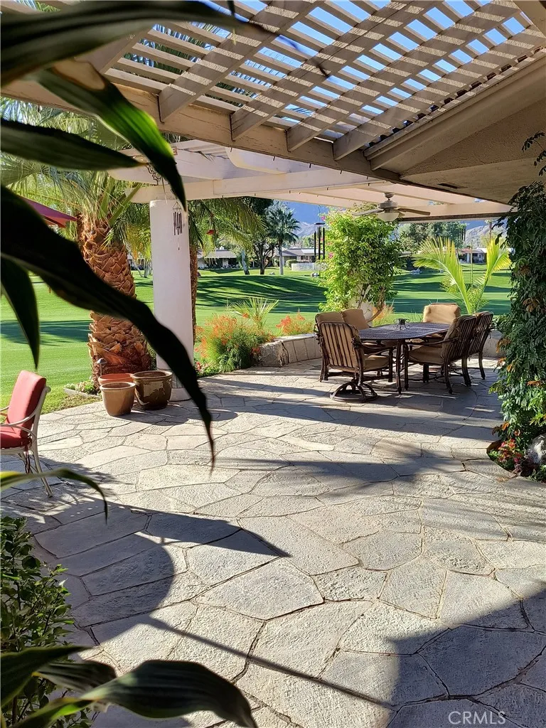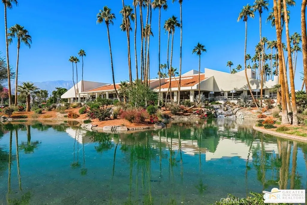 Discover Ultimate Desert Living at the Springs Country Club. most sought-after Residential Community in Rancho Mirage. IF LOCATION AND VIEWS ARE IMPORTANT TO YOU LOOK NO FURTHER. This Home is on the NEWLY DESIGNED Spring Country Club Golf Course. The Springs is more than a community-- it's a lifestyle. amenities rival those offered at the best Private Clubs. Enjoy State-of-the-art Fitness Center, golf, tennis, pickleball, bocce ball, and a vibrant array of social clubs activities including art, wine, books, card games, and an engaging speaker series. This Phenomenal Location faces Unparalleled facing South with sweeping breathtaking panoramic view of the majestic Santa Rosa and San Jacinto Mountains, elevated about 6 ft overlooking the 11th fairway two picturesque Lakes, 11th ,12th and 15th greens. This Oasis boasts 26 mature palms, and pine trees, 3 patios and walkways all covered in Arizona Flagstone. Entry & Front patio has a 7ft wall waterfall and garden fountain. Backyard has outdoor Mist Cooling System, Ceiling Fans, Beautifully Landscaping W lighting. And Breath-Taking views. This Home was Remodel in 2024. This upgraded 3-bedroom, 3-bathroom home features en-suite bathrooms for each bedroom, offering privacy and comfort for you and your guests. A sophisticated and well-equipped kitchen with custom cabinetry, state-of-the-art Chefs Kitchen with all stainless appliances, Quartz counter tops, and Reverse Osmosis water system open concept kitchen flows seamlessly into the spacious great room, you have showcasing expansive beautiful views from every room in the home. Thro