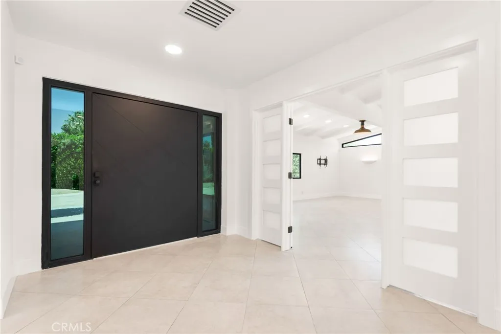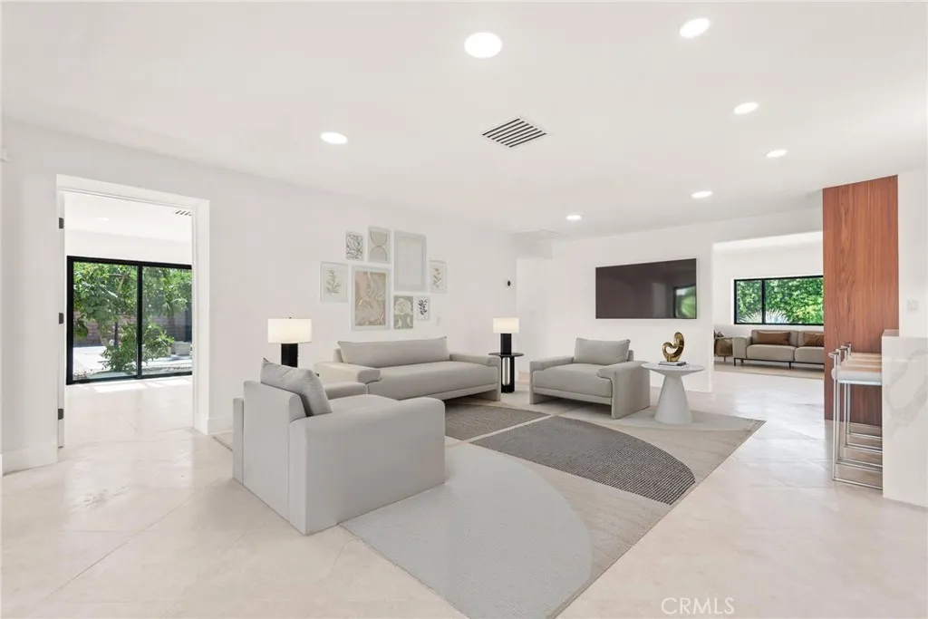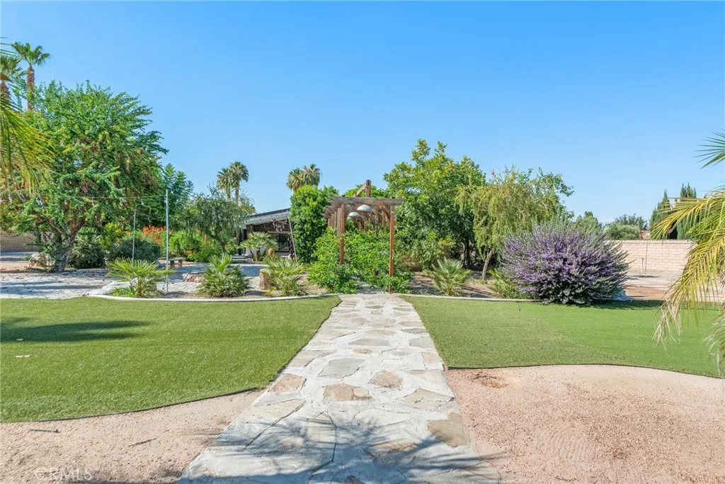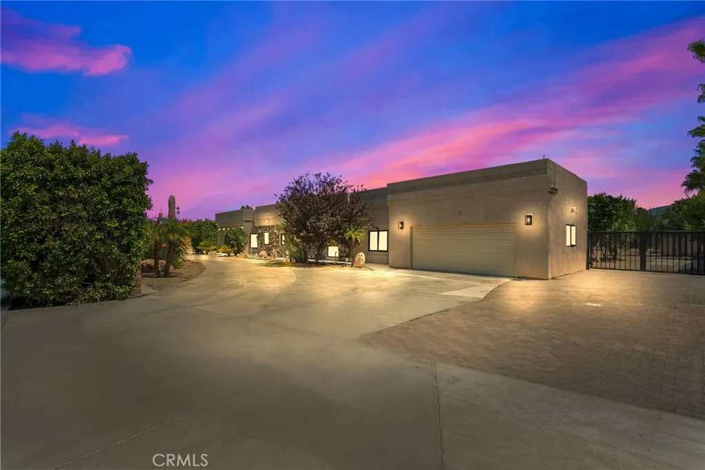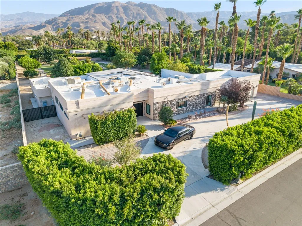 Welcome to your private, fully remodeled oasis in the exclusive Clancy Lane area of Rancho Mirage. This extraordinary 4-bedroom, 4-bathroom estate sits on an oversized 1-acre (40,946 sqft) lot offering the tranquility of a private park with lush landscaping, mature fruit trees, and luxurious finishes throughout. A circular driveway leads to a striking custom pivot front door, setting the stage for the sophisticated design inside. Step into soaring ceilings, an open-concept layout, and abundant natural light enhanced by new modern windows and sliding glass doors. The interior showcases stylish accent walls, large-format porcelain tile flooring, modern aluminum AC registers, all-new recessed LED lighting, and exquisite Restoration Hardware chandeliers. The fully updated three-unit HVAC system, new electrical switches, and chic interior doors and moldings reflect meticulous attention to detail. The gourmet kitchen is a designers dream, featuring Shinoki wood cabinetry, premium quartz countertops, ZLINE Gold Signature Series appliances, a built-in 60-bottle wine cooler, and elegant fixtures. The expansive primary suite offers direct access to the pool and deck, a spa-like bathroom with a soaking tub, oversized shower, dual vanities, and a spacious walk-in closet. Three additional guest bedrooms are positioned on the opposite wing for maximum privacy. Enjoy resort-style outdoor living with a sparkling pool and spa, custom water features, an outdoor kitchen with porcelain and marble tile, built-in seating around a cozy firepit, a putting green, and multiple garden vignettes. The