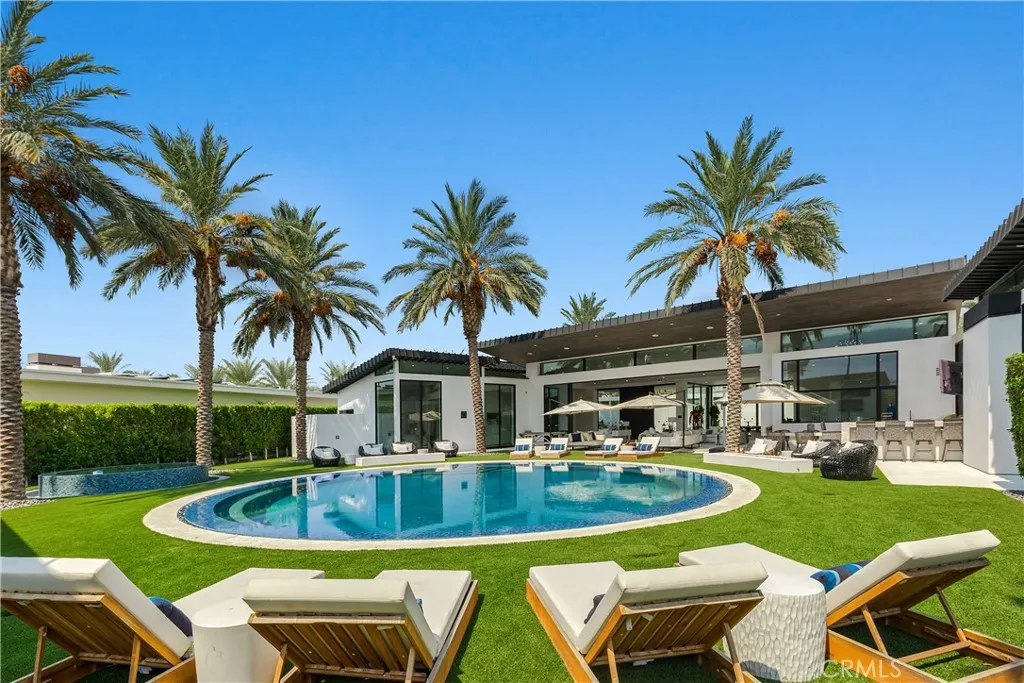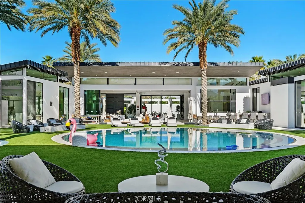 Introducing 8 Makena, An Architectural Masterpiece that is the premiere trophy property in the development that blends futuristic design with mid-century modernist aesthetics, inspired by the legendary architect Joseph Eichler. Dubbed the "Desert's Iron Man House", this private, gated estate is an exclusive oasis for the most discerning clientele. Set on over half an acre of meticulously manicured grounds, this 4,702-square-foot marvel offers a one-of-a-kind living experience in the prestigious enclave of Rancho Mirage, just moments from the fine dining and luxury shopping of El Paseo. With soaring ceilings up to 20 feet, floor-to-ceiling glass walls , no interior steps , limestone flooring throughout and expansive free flowing open spaces, this home captures 270-degree vistas of the stunning Santa Rosa Mountains, bathing the southwest-facing outdoor spaces in dramatic sunset views. The distinctive round arc reactor pool and expansive outdoor entertainment areas fulfill every desire, making this estate ideal for grand gatherings or intimate family moments. Inside, the residence boasts spacious living areas designed to entertain, including a luxurious primary suite with mountain views, a large walk-in shower, and a soaking tub. A separate, fully equipped casita adds a private retreat for guests or extended family, complete with its own kitchenette, bath, and outdoor living space. The home's strategic design harmonizes opulent indoor spaces the graciously tie in the outdoor living areas to be ONE, featuring a James Bond-worthy relaxation pavilion, bar, and barbecue area, perf