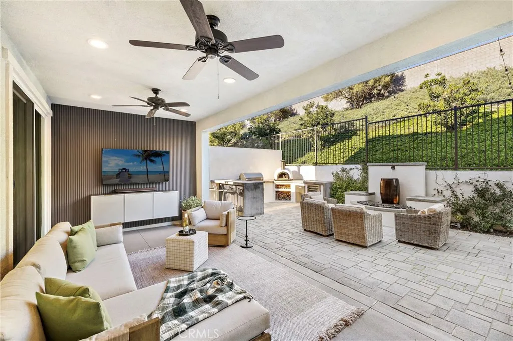 Welcome to 48 Jarano Street, perfectly situated in the highly coveted neighborhood of Reverie in Rancho Mission Viejo. Every room in this stunning home has been thoughtfully upgraded with quality finishes and designer details. Step inside to find luxury vinyl plank flooring throughout, a fully remodeled chefs kitchen featuring white quartz countertops and backsplash, custom cabinetry, and shiplap-style ceilings that add warmth and charm, alongside the professional IIve dual fuel range upgraded stove. The living room is beautifully designed with a cozy fireplace and elegant window coverings, creating the perfect space to relax or entertain. A flexible downstairs bedroom serves perfectly as a guest suite or home office, offering privacy and space, while upstairs youll find 4 additional spacious bedrooms, each designed for comfort and functionality. The laundry room has been fully remodeled for added style and convenience, and the three-car oversized garage boasts epoxy flooring, and custom storage units. Step outside to your backyard entertainers dreamcomplete with a California room, wood-paneled privacy walls, and private lush hillside views. Enjoy gatherings around the upgraded built in BBQ including Coyote pellet grill/smoker and wood-fired pizza oven, creating the ultimate indoor-outdoor living experience. This home truly combines modern upgrades, thoughtful design, fully paid solar, and exceptional craftsmanship in one of Rancho Mission Viejos most desirable communities. Experience resort-style living at its finest. As part of the Rancho Mission Viejo community, you'll e