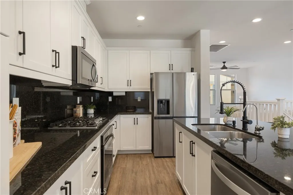 Welcome to 48 Jaripol Circle, located in the award-winning community of Rancho Mission Viejo and the charming Sage neighborhood. Recently refreshed with new paint, plush carpet, and modern fixtures, this home offers a warm yet contemporary atmosphere designed for both comfort and style. Step through the inviting front porch into a light-filled foyer, leading to a versatile bedroom with an en-suite bathperfect for guests, multigenerational living, or a private home office. This level also features a discreet stacked laundry area, generous hallway storage, and direct access to the oversized two-car garage, with plenty of room for storage, a gym, or a workbench. Upstairs, soaring ceilings and abundant natural light define the open-concept living area. At the heart of the home, the gourmet kitchen showcases stainless steel appliances, sleek countertops, a spacious island with seating, and abundant cabinetry. The dining area and great room flow seamlessly to a covered balcony, ideal for outdoor dining or quiet evenings. The upper-level primary suite provides a private retreat with dual sinks, quartz countertops, and a walk-in shower. Blending elegance with practicality, this home is designed for both style and everyday efficiency. As a Rancho Mission Viejo resident, youll enjoy exclusive access to world-class amenities: resort-style pools and spas, fitness centers, sports courts, scenic trails, community farms, playgrounds, gardens, dog parks, and unique gathering spots like a coffee shop, arcade, and fire pits. Nearby retail and easy access to Los Patrones Parkway and the 241 T