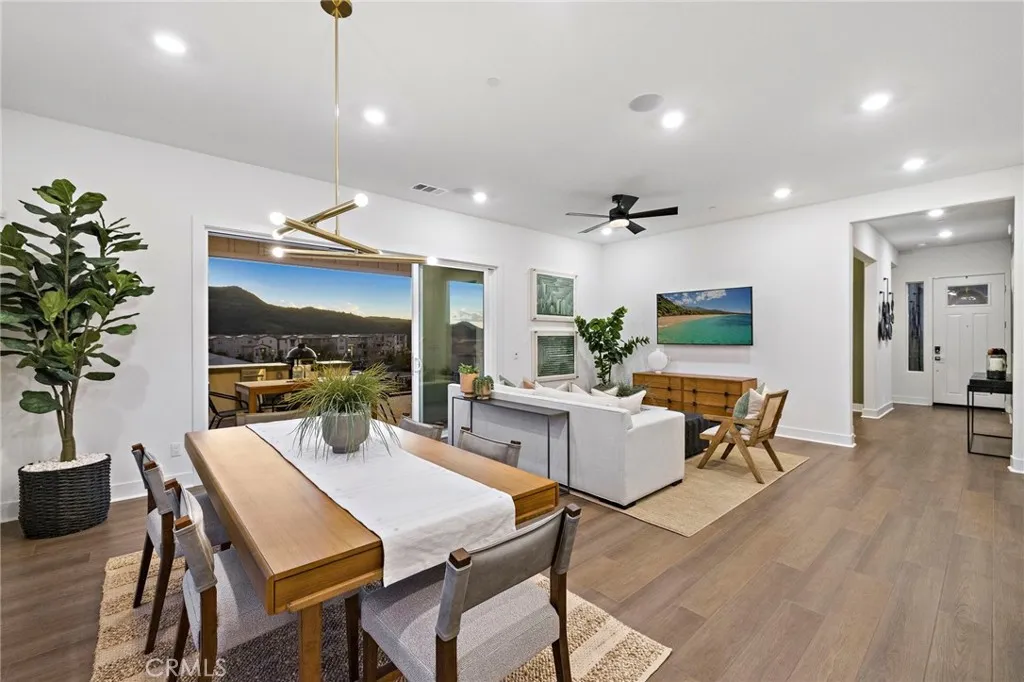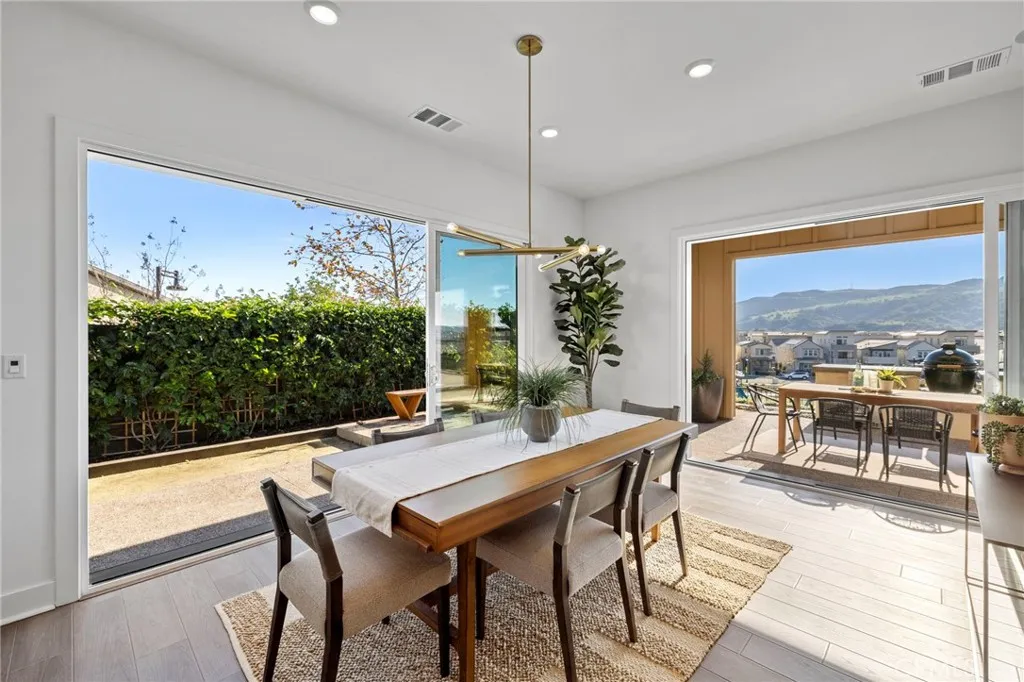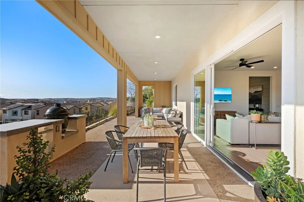 Perched on a hillside with panoramic views, this former Pearl Model Home impresses. Upon entry you are drawn in by the two walls of glass stacking doors opening to the stunning backyard with panoramic views of the hills and beyond. Rich wide plank luxury vinyl flooring flows throughout the main living spaces of this highly upgraded former model home. The kitchen features white cabinetry with soft close hinges, white quartz countertops, full tile backsplash and stainless steel appliancesincluding a large built-in refrigerator and 6 burner stove. Two bedrooms, including the primary suite and secondary suite, office, laundry room and powder bath are all on the first floorincluding an attached two-car garage with epoxy flooring plus an 8 panel Solar System. Just upstairs the second floor boasts a large bonus room with full bath which can be used as a third bedroom suite, gym or game room. The spacious primary suite with beautiful limestone tile focal wall and designer chandelier. Its generous ensuite bath has a dual sink vanity, walk-in shower with glass enclosure and bench seat and a large walk-in closet. Office with custom paint and a modern oversized brass ceiling light for a curated look. Guests will be welcomed with upgraded carpeting, a stylish wallpapered accent wall and striking gold chandelier. Plus the ensuite bath with single sink vanity and tub/shower combination makes it a luxurious space for guests. Upstairs is a oversized bonus room with wrap around windows that share the same stunning views as the backyard. With an ensuite full bath and wall of closets, this spa