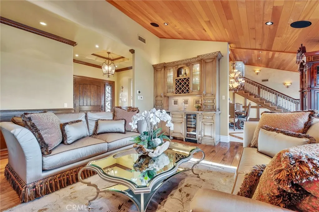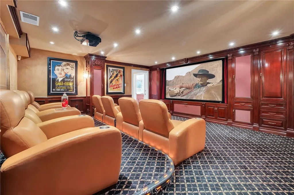 Welcome to 16 Saddle Road, a private, resort-style escape set on a rare 21,383 sq ft lot, where timeless craftsmanship meets cutting-edge luxury in one of Rancho Palos Verdes most coveted enclaves. From the moment you arrive the warm cedar siding, classic slate roof, and manicured coastal landscaping set the tone. Inside, artisan details and premium materials define every space. High vaulted cedar wood ceilings create a dramatic yet inviting atmosphere, complemented by smooth Venetian plaster walls, custom solid hickory wood floors, and custom interior solid hardwood doors crafted from fine Honduras wood. The homes thoughtful design offers 5 bedrooms and 5 full baths, including a dedicated, fully customized private office suitecomplete with its own bathroom, balcony, built-in cabinetry, TV, and custom deskwhich can easily function as a fifth bedroom or luxurious guest quarters.The gourmet kitchen is a true showpiece, equipped with top-tier Thermador, Miele, Wolf, and Sub-Zero appliances, custom cabinetry, and an oversized island ideal for entertaining. Throughout the home, a high-end Lutron lighting system and integrated audio with in-ceiling speakers and individual controls elevate both convenience and ambiance. For the ultimate entertainment experience, a fully dedicated, soundproof home theater features a 120' screen powered by 7.2 surround system with high-end built-in speakers and eight electric, power-reclining leather chairsdelivering a true cinematic environment in the comfort of your own home. The primary suite offers a serene retreat, complete with a spa-inspired