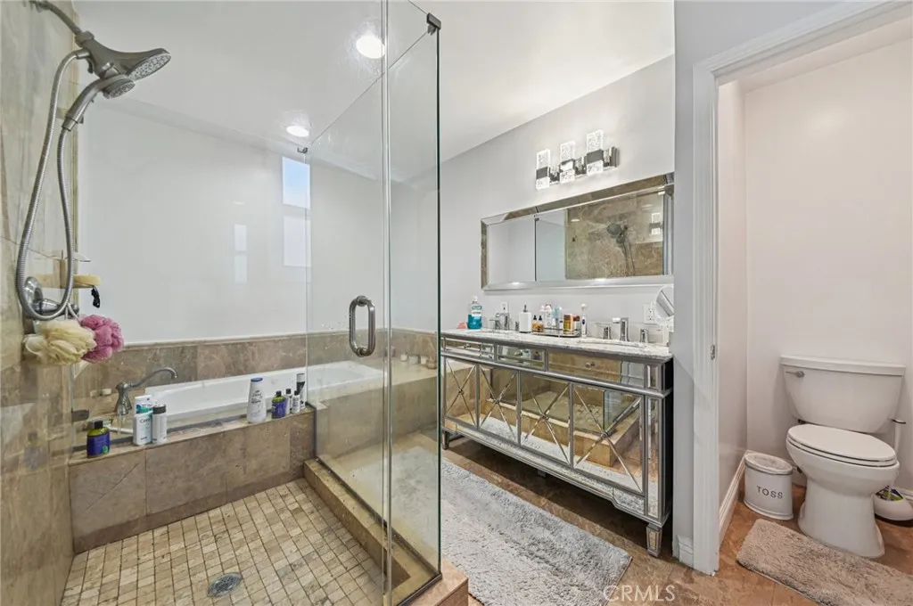 Proudly introducing this stunning 4-bedroom, 3-bath Rancho Palos Verdes single-family residence offering 2,726 sq. ft. of beautifully updated living space. Enter inside to a welcoming formal living room featuring modern lighting, a sleek fireplace, and luxury vinyl plank flooring that flows seamlessly throughout the home. The open-concept kitchen impresses with quartz countertops, stainless steel appliances, and a stylish tile backsplash, perfectly blending into the dining area and expansive family room ideal for entertaining, a home office, or a cozy den. Two bedrooms are conveniently located on the lower level, including the spacious primary suite complete with a walk-in closet and an appealing en suite bathroom featuring a freestanding soaking tub and glass enclosed separate shower. Upstairs, youll find two additional bedrooms and a 3/4 bathroom, providing great separation of space. Enjoy outdoor living on the large PEX deck, perfect for relaxing or hosting gatherings, and take advantage of the additional storage offered by the TUFF shed. Located within the highly rated Palos Verdes School District and just moments from The Terraces Shopping Center home to Trader Joes, Starlight Cinemas, and a variety of shops and restaurants this home offers the perfect combination of comfort, style, and convenience.