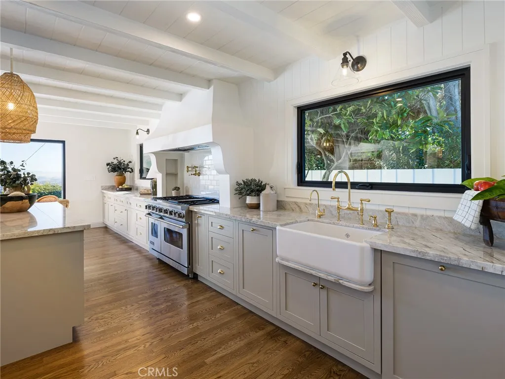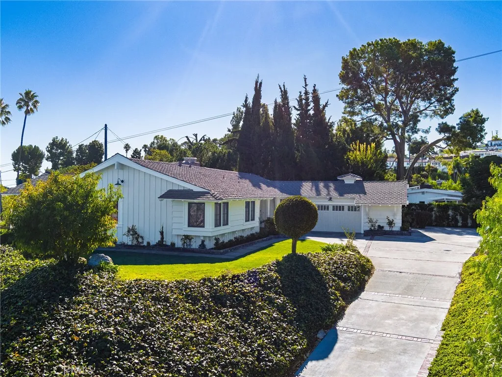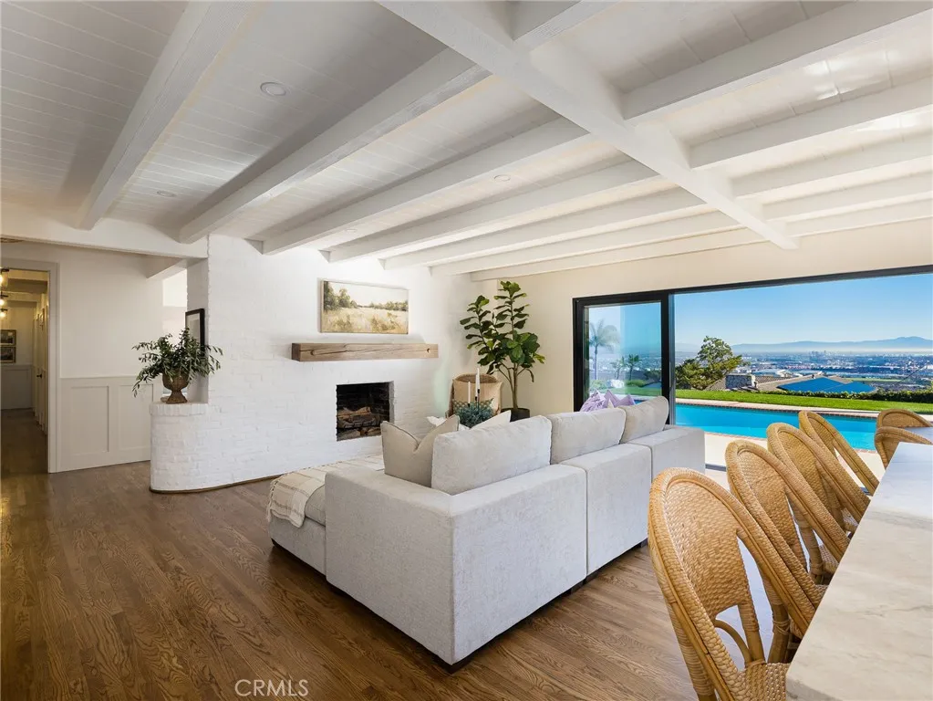 Welcome to 2636 Sunnyside Ridge Road, a serene single-level retreat nestled on a quiet cul-de-sac in Rancho Palos Verdes. Privately set behind a long driveway, this fully remodeled home showcases breathtaking harbor, ocean, mountain, and city views from nearly every roomstretching from downtown Los Angeles to Dana Point. Set on nearly half an acre, the property delivers true indooroutdoor living with a large flat backyard and expansive spaces for dining and entertaining. A sparkling pool, firepit lounge, mature rose garden, fruit trees, and a complete outdoor kitchen with built-in BBQ create a resort-like setting designed to maximize the homes exceptional views. Inside, the layout includes four bedrooms, three fully remodeled bathrooms plus an office. Double 16-foot sliding glass doors frame stunning sunrises and evening harbor lights, while panoramic views carry through the primary suite, kitchen, dining, family, and living rooms. Vaulted and open-beamed ceilings, along with two brick fireplaces, add warmth and architectural charm. The home has been extensively redesigned with high-end finishes throughout. The gourmet kitchen features new cabinetry, Taj Mahal quartzite counters, Viking appliances, a large island, and a butlers pantry with laundry area. Additional upgrades include all new windows and doors, solid oak hardwood floors, custom millwork, full interior and exterior repainting, an oversized two-car garage (can easily be three cars), solar power, a new HVAC system, and upgraded electrical panel, wiring and lighting. Conveniently located near top-rated Palos Verdes