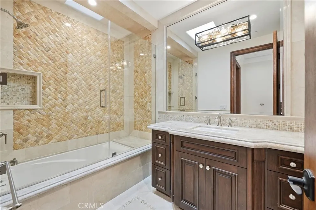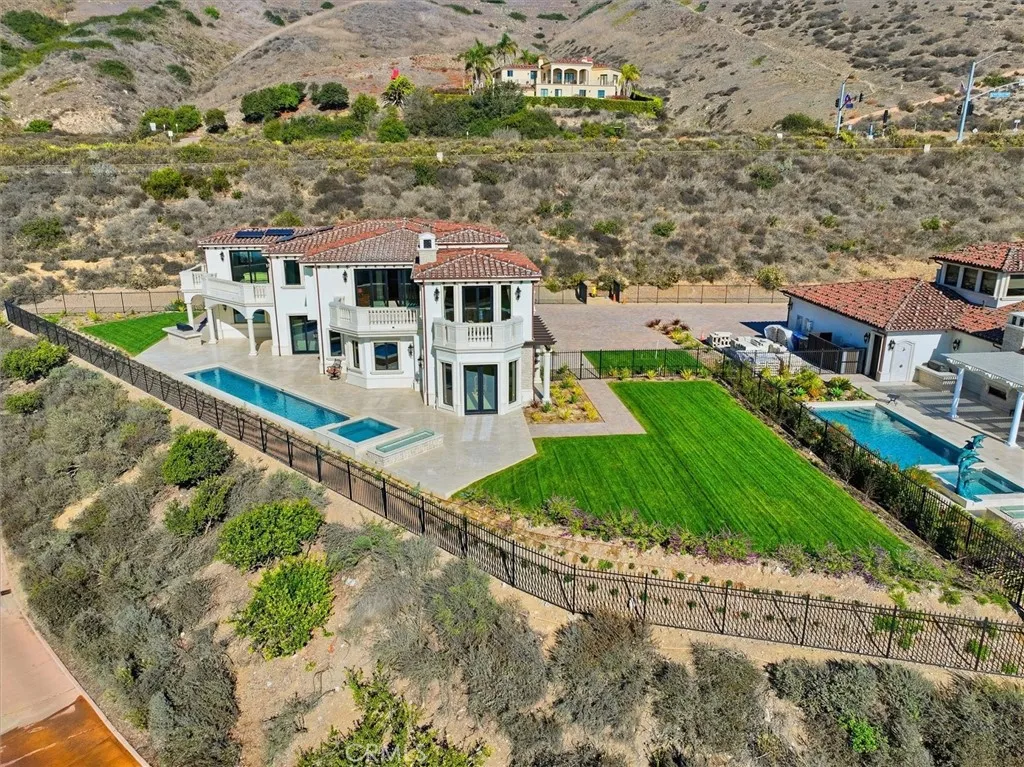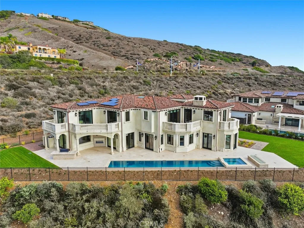 This special brand-new golf estate is a true gem with unobstructed Pacific Ocean and Golf Course Views within a private guard secure community. Introducing a new era of coastal sophistication in this new 5 bedroom with 5 ensuite bathroom estate, perfectly positioned within the prestigious Estates at Trump National Golf Course in Rancho Palos Verdes. Spanning nearly 5,000 sq. ft. of meticulously curated living space, this architectural masterpiece situated on a dream lot captures sweeping panoramic views of Trump Golf Course, the Pacific Ocean and beautiful Catalina Island from nearly every vantage point. Step through grand mahogany doors into a world defined by craftsmanship and comfort. Crema Marfil stone floors, alder cabinetry, and oak wood accents complement three elegant gas fireplaces in the living room, den, and primary suite which leads to a large primary bath with jacuzzi tub and walk in steam shower. The designer kitchen is a chefs dream, featuring granite slab countertops, a Wolf 6-burner range with griddle, Sub-Zero refrigerator, large wine fridge, dual sinks, two dishwashers, and a custom walk-in pantry with pull-out drawers. Designed for seamless indoor-outdoor living, the residence transforms to an entertainers paradise, complete with a lap pool, jacuzzi, outdoor fireplace, and fire pit set against the backdrop of glowing Pacific sunsets and 6+ Trump Golf Course tees enjoyed from the yard and multiple balconies. Every modern amenity is at your fingertips, including a main floor guest half bathroom for convenience, a private elevator ensuring effortless access