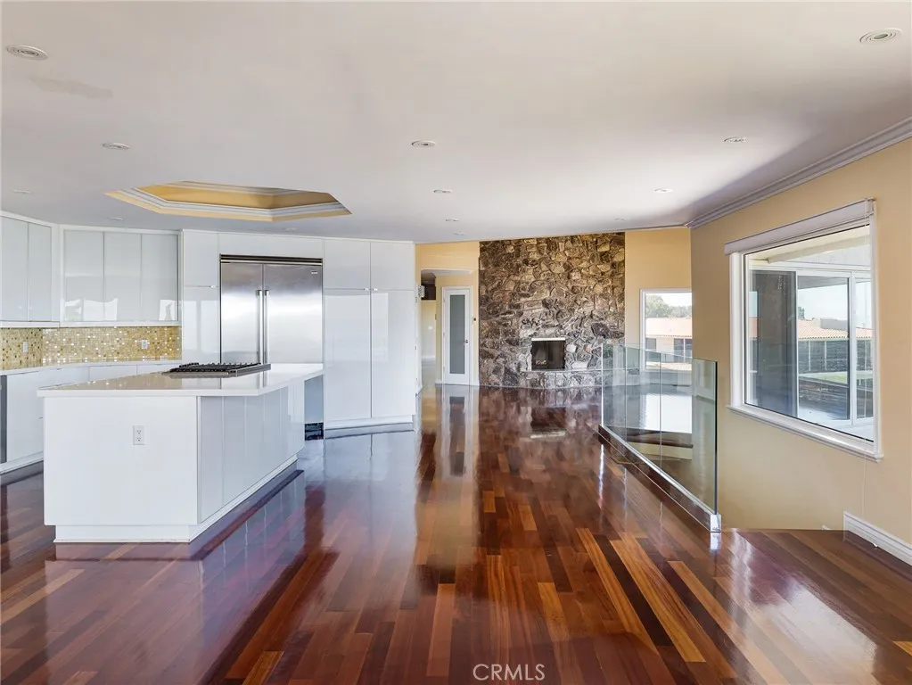 Absolutely amazing view!! This gorgeous 4-bedroom contemporary home will treat you, your family and guests to an amazing panoramic view from Malibu to Long Beach from nearly every room in the house. A WALL OF GLASS GREETS YOU AS YOU ENTER THE HOME EXPOSING THE MOST JAW DROPPING VIEWS. Spacious and modern, the open floor plan and completely remodeled island-style kitchen with custom soft-touch close cabinets make this home perfect for entertaining. Further amenities include: stainless steel built-in appliances, cherry wood floors throughout including plank cherry wood stairs, double-pane windows, double glass doors for the main entrance, a 3-zone high-efficiency heating and central cooling system, interior and exterior glass railings to maximize view from all rooms, recessed 4-inch lights with dimmer controls, high vaulted ceiling, three gas fireplaces and a wet bar. Plus, there are two patios and one large deck where everyone can enjoy the beautiful sunset views. There are custom built-in closets with ample storage both in the home and garage. Residents have access to the top ranked Palos Verdes Schools such as Mira Catalina Elementary, Miraleste Intermediate, and your choice from two of the top ranked high schools in California. A must see, this listing will not last long!