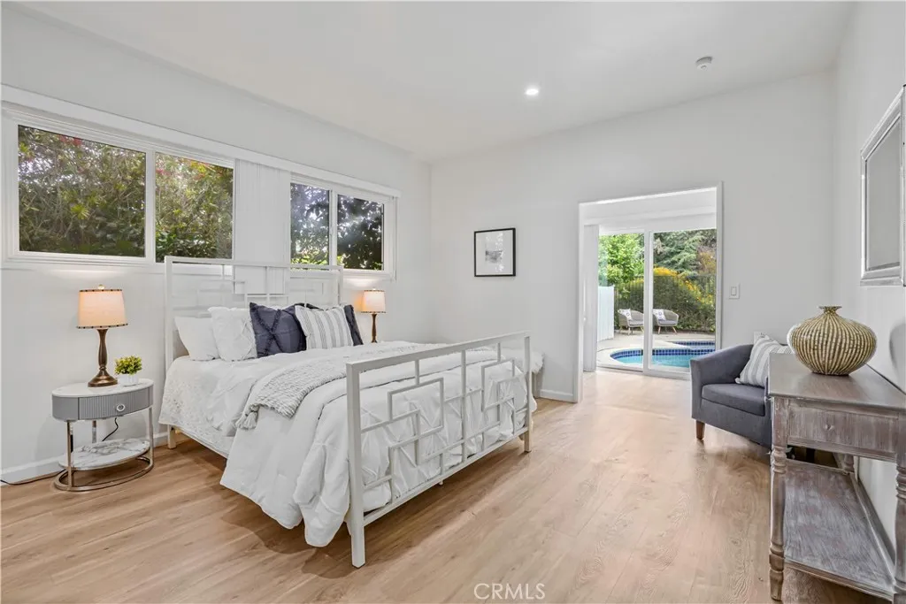 Enjoy coastal living in this inviting pool home with ocean views, located in a quiet neighborhood. This charming single-level residence offers true one-floor living, ocean views, and seamless indoor-outdoor flowideal for comfort, convenience, and long-term livability. With accessibility enhancements already incorporated, this home allows homeowners to move in and enjoy long-term comfort immediately. Step through the front door into a spacious open floor plan featuring a living room with a cozy fireplace and a bright family room with its own fireplace and floor-to-ceiling windows that flood the home with natural light. Multiple sliding glass doors lead to a private backyard, creating an effortless setting for entertaining and everyday enjoyment. Thoughtfully designed for accessibility and ease of living, the home features a single-story, mobility-friendly layout, making it well-suited for aging in place, multigenerational living, or enhanced everyday comfort. The modern kitchen boasts sleek quartz countertops, stainless steel appliances, and ocean views. Down the hallway are four well-sized bedrooms, including a primary bedroom with its own ocean view, along with two beautifully updated bathrooms featuring quartz countertops and skylights that bring in abundant natural light. Additional highlights include newer flooring and window coverings throughout, central air conditioning, and convenient in-home washer/dryer hookups. Outdoors, unwind in the private heated pool and spa or host guests in the spacious backyard retreat. A two-car garage with side door access is complemented