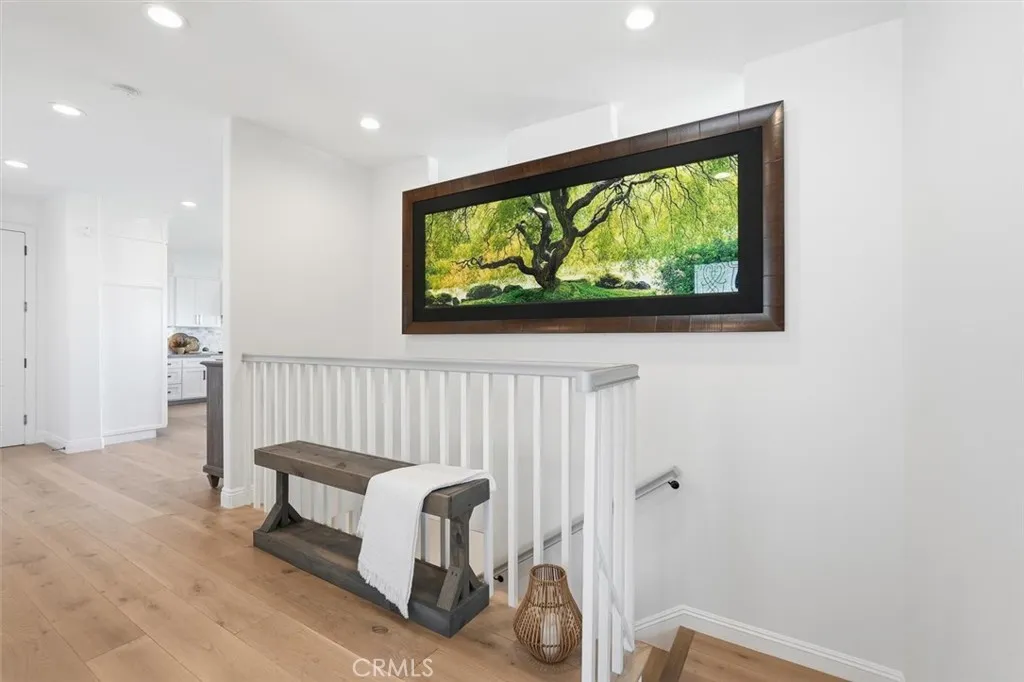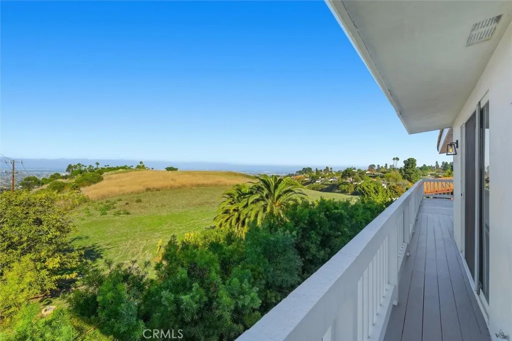 From the moment you walk through the front door, this home unfolds in layersfrom a quiet entryway to a sweeping hillside and city-lights view that catches you completely by surprise. Its the kind of setting that feels worlds away, yet remains close to everything. Surrounded by mature trees and parkland, the property enjoys rare privacy and an open, natural backdropan uncommon luxury for L.A. living. Natural light pours across wide-plank white oak floors, guiding you through an open, connected main level where the living, dining, and kitchen flow effortlessly toward a continuous view deck. Expansive windows frame the hills and shimmering skyline beyond the park, filling the home with a sense of calm and space that only the Palos Verdes hills can offer. The kitchen was designed for those who love to cook, host, and gather. Outfitted with premium Thermador appliances, dual dishwashers, under-cabinet wine refrigeration, and a walk-in pantry with extra pull-out storage, it blends beauty with function. Shaker cabinetry and natural stone counters tie it all together, leading to a living area anchored by a sleek modern fireplacewhere evenings unfold with the distant glow of city lights as your backdrop. Downstairs, all bedrooms are thoughtfully grouped to create a peaceful retreat separate from the main living spacesideal for households that love to entertain. Two primary suites offer flexibility for guests or multi-generational living, while the main suite elevates the experience with dual mirrored closets, a walk-in, motorized blackout shades, and a spa-style bath with soaking tu