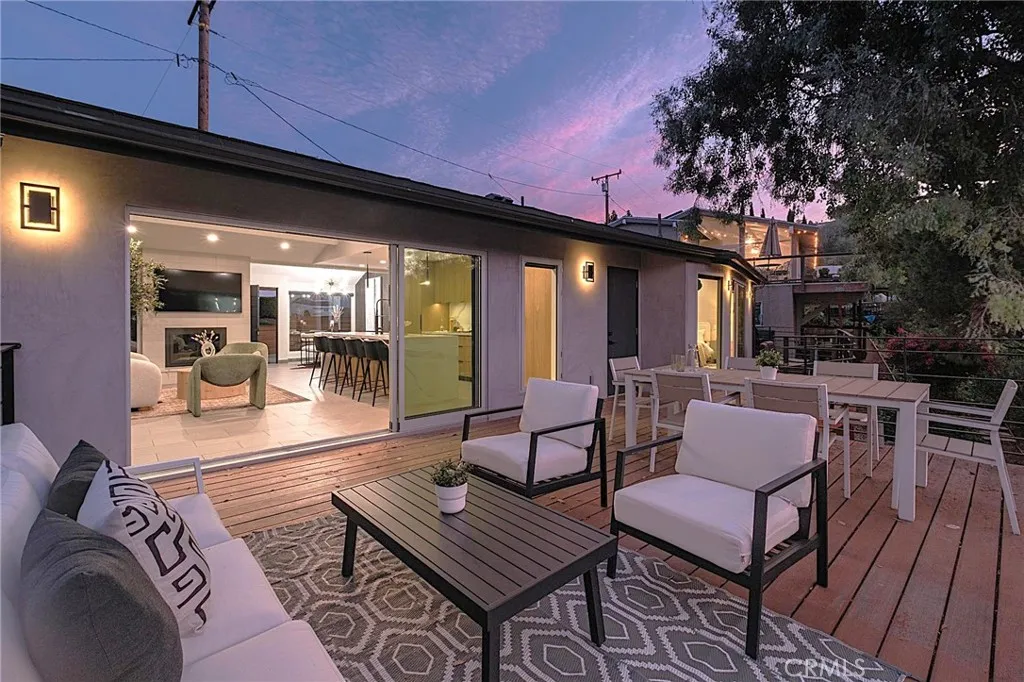 Presenting 6441 Via De Anzar ~ Step into a world of comfort, class and sophistication with this stunning 3-bedroom 3-bath residence featuring excellent overall design, flow along with an unmatched living experience. This gorgeous Resort-Styled View home is Zen inspired and features a modern flare. Upon entering through the Kerf cut flush pivot entry door you'll be welcomed by a thoughtfully designed layout featuring a spacious living room that seamlessly connects to a modern kitchen outfitted with newer high-end Miele appliances, custom Blum soft close cabinetry, Thermador refrigerator/freezer along with a beautiful kitchen island. The Fleetwood sliding windows allow for a seamless transition between indoor and outdoor living. The open-air entertaining deck spaces are perfect for al fresco dining, morning coffee, or sunset cocktails. A stunning blend of style and function, this home features a designer-inspired open floor plan and premium finishes that elevate every space along with a warm family home feel. All three bedrooms are spacious and feature rear yard/deck access points. The resort-styled primary retreat features a massive walk-in closet, a spa-inspired walk-in En-Suite bath, dual sinks, Kohler Numi smart toilet, large soaking tub, Kallista custom black matte fixtures and a Seura mirror TV. The home is adorned beautifully & adjusts to any lifestyle from the family/kids study-play area, to the sophisticated adult entertaining space. Take notice of the massive storage cabinet space on the lower level along with a dedicated tech room and a separate fire rated safe/sto