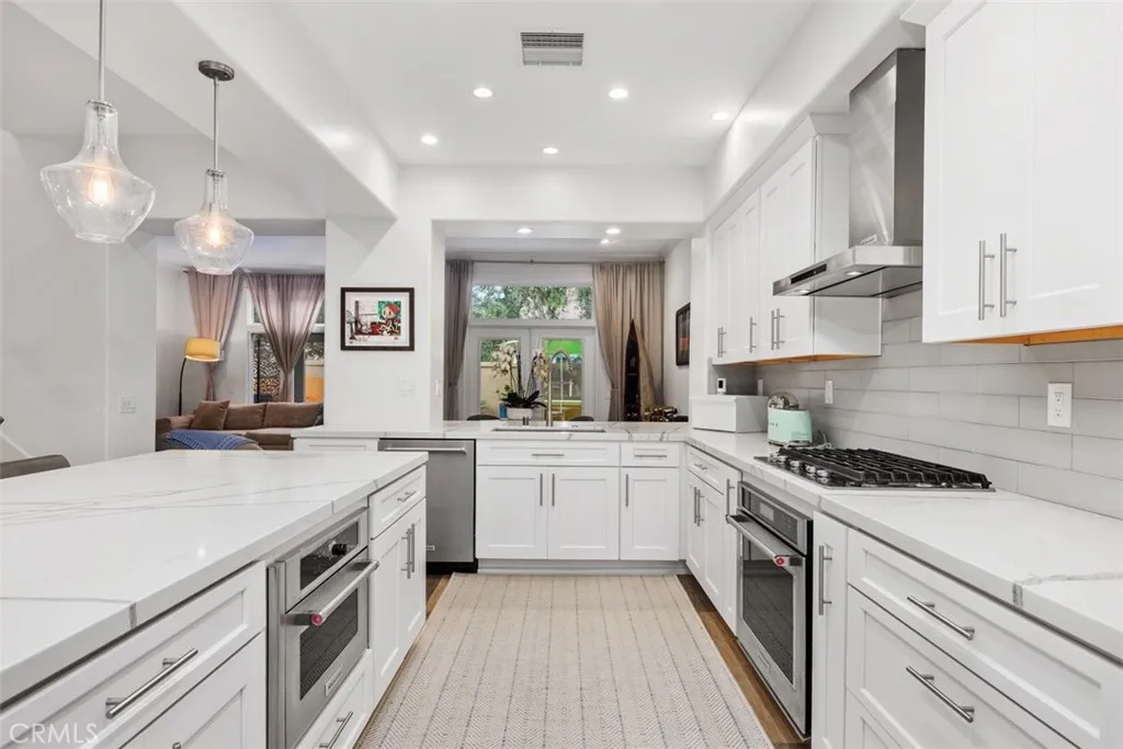 Set within the gated Alcala enclave of Whispering Palms, this refined Davidson-built residence blends elevated design with a relaxed, effortless way of living. The sought-after Viola model offers generous indoor-outdoor flow, airy volume, and thoughtfully refreshed spaces that complement the communitys tranquil Rancho Santa Fe setting. A prior full remodel introduced quartz surfaces, European-style shaker cabinetry, Coretec Blackstone Oak plank flooring on the main level, and KitchenAid appliances. The current owner continued the enhancements with hardwood flooring throughout the upper level, hardwood stairs with a modern open rail, upgraded fireplace inserts, a refreshed patio environment, and additional functional improvements including a newer water heater, water purification system and updated garage door opener. The kitchen features quartz counters, a stylish matte ceramic tile backsplash, a center island, and seamless connection to the great room. The living area centers around a stone-accented fireplace and extends toward the outdoor patiofinished in custom concrete pavers and designed with a built-in dining/bar setup, BBQ, and fire feature for effortless evening gatherings. Upstairs, the private rooms feel warm and calm, supported by rich hardwood flooring and a thoughtfully enhanced primary suite with quartz counters and contemporary finishes. The Alcala community provides a serene resort-style environment with two pools, two spas, lushly maintained grounds, roaming security, and gated access with an attendant on most days. Positioned moments from the La Valle Coas