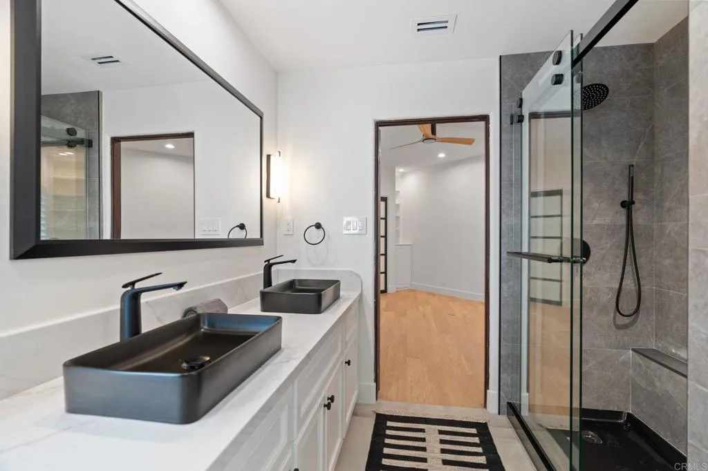 This fully reimagined single-level modern estate captures western exposure, gentle ocean breezes, and sweeping views that set a serene tone throughout the home. Grand dual pivot doors open to wide-plank oak flooring, custom-beamed ceilings, designer lighting, and natural stone finishes that create a warm, elevated atmosphere from the moment you arrive. The chefs kitchen features Sub-Zero and Viking appliances, a statement Mont Blanc quartzite island, and custom cabinetry, all flowing effortlessly into the great room and out through expansive multi-slide doors to the resort-style backyard. A dedicated theater room, refined home office, integrated sound system, LED ambient lighting, and brand-new framed 8K art TVs make everyday living both simple and enjoyable. The primary suite offers a private retreat with direct outdoor access, a spa-like bath with marble shower and smart toilet, and an oversized walk-in closet. Each additional bathroom is finished with the same meticulous attention to detail. Outside, the newly rebuilt pool features natural-stone coping, PebbleTec finish, fresh plaster, and LED lighting. The outdoors include a pergola-covered living room, built-in BBQ, linear fireplace, and two custom water fountains, creating a true resort experience at home. Five indoor/outdoor fireplaces and new professional landscaping complete the setting. The property also includes acreage that extends into the creek riverbeda natural, maintenance-free preserve filled with native plants, palms, and wildlife. This turn-key estate invites you to move in and immediately enjoy the best