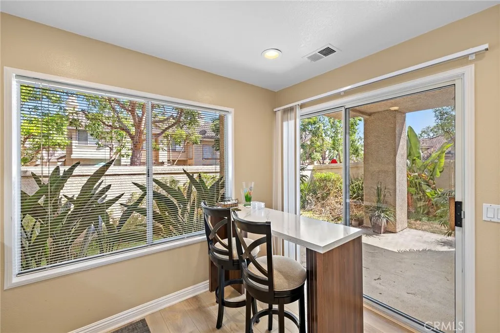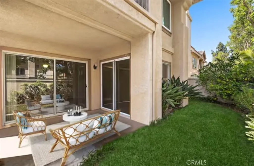 LOWER LEVEL | EASY ACCESS | FENCED-IN YARD | Welcome to 1 Encantado Canyon, a beautifully updated single-story end unit located in the sought-after Belterraza community of Rancho Santa Margarita. This light-filled 1,230 sq ft home features vaulted ceilings, an open-concept layout, an inviting fireplace, and stylish wood-like flooring throughout the main living areas. A spacious wraparound patio offers the perfect space for both relaxing and entertaining. The kitchen is equipped with Corian countertops, a modern tile backsplash, and direct patio access, while the primary suite includes cozy carpet, dual closets, a spa-inspired bathroom, and private access to a serene patio with a mature lemon tree. A second bedroom and full bath provide flexibility for guests or a home office. Additional highlights include fresh interior paint, two single-car garages (one with direct entry and laundry), low HOA fees, and access to SAMLARC amenities such as pools, parks, and a private beach club making this home a perfect blend of comfort, convenience, and prime location. Rancho Santa Margarita has been voted the Safest City in California multiple times, and in 2025!