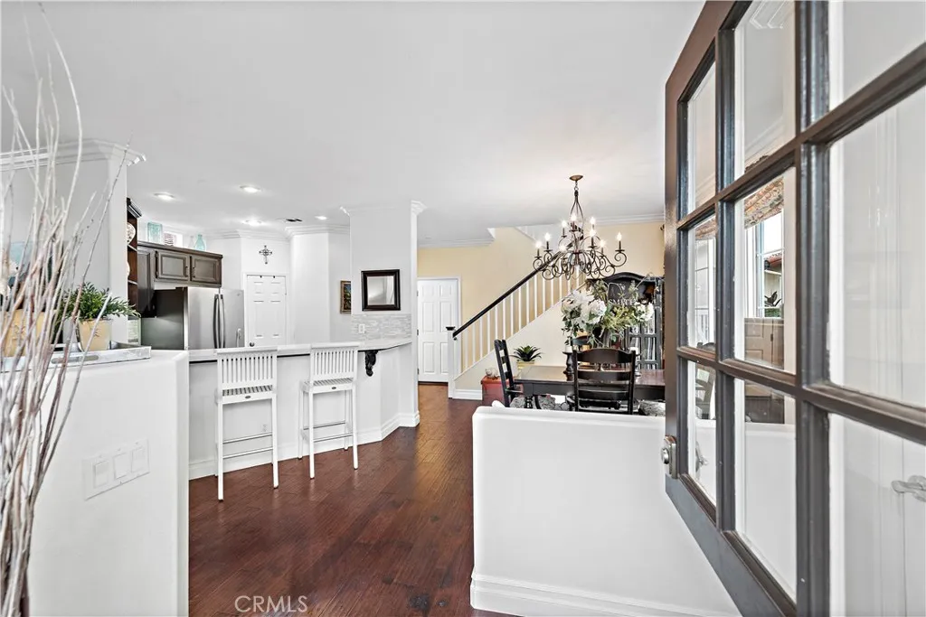 Welcome to 12 Paseo Vecino located in a charming gated community in the safest city in California! You will immediately love the curb appeal with stone accents, a white picket fence and a welcoming dutch door. Once inside you will appreciate the remodeled kitchen offering newer cabinets, quartz counters, custom backsplash, farmhouse sink, stainless appliances and a bonus walk-in pantry. In addition there are hardwood floors throughout, custom mouldings and most importantly the open floorplan. The layout is ideal for entertaining or special gatherings. The spacious dining room leads to the private side patio which is perfect for indoor/outdoor living. With the beautiful SoCal weather you will want to utilize the charming outdoor space! Upstairs there are 4 bedrooms PLUS a loft that is ideal for a second family room or an office and a laundry area. The primary bedroom has a lovely view of the community park. The primary bathroom boasts dual sinks, a beautiful newer stone shower and a large walk-in closet. The neighborhood is close to many Samlarc amenities, shopping, dining and the theater. What more could you want? Come see what makes this home so special!