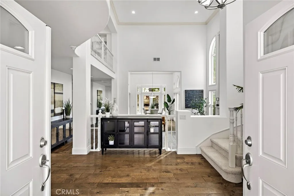 Welcome to 2 Dellwood, a light-filled home in the prestigious gated community of Dove Canyon. This beautifully maintained residence showcases major recent upgrades, including Milgard dual-pane windows and sliding glass doors, a newer roof with replaced fascia boards and rain gutters, and fresh interior paint. Other enhancements include a newer water heater, upstairs air conditioning, low-maintenance turf, improved outdoor drainage, and resurfaced cabinetryall upgrades for comfort and peace of mind. Set on one of the larger corner lots, the property features an expansive pool-sized backyard with endless possibilities for outdoor livingideal for entertaining, gardening, or designing your dream pool and spa. The sunny exposure and private location create an airy, open feel. Inside, the flexible floor plan includes a downstairs bedroom with its own ensuite bathroom, perfect for guests or multigenerational living. Upstairs, the spacious primary suite is a true retreat with a cozy fireplace, and a sitting room that opens to a balcony overlooking the lush backyard. The three-car garage offers excellent functionality with built-in storage racks and a 220 Volt EV charging outlet, providing convenience for todays lifestyle. Enjoy the best of Southern California living in Dove Canyon, featuring 24-hour guard-gated security, a scenic golf course, community pool and spa, tennis/pickleball courts, and miles of walking trails. 2 Dellwood blends thoughtful upgrades, an expansive corner lot, and a highly functional floor plan with the amenities of Rancho Santa Margarita and the schools of C