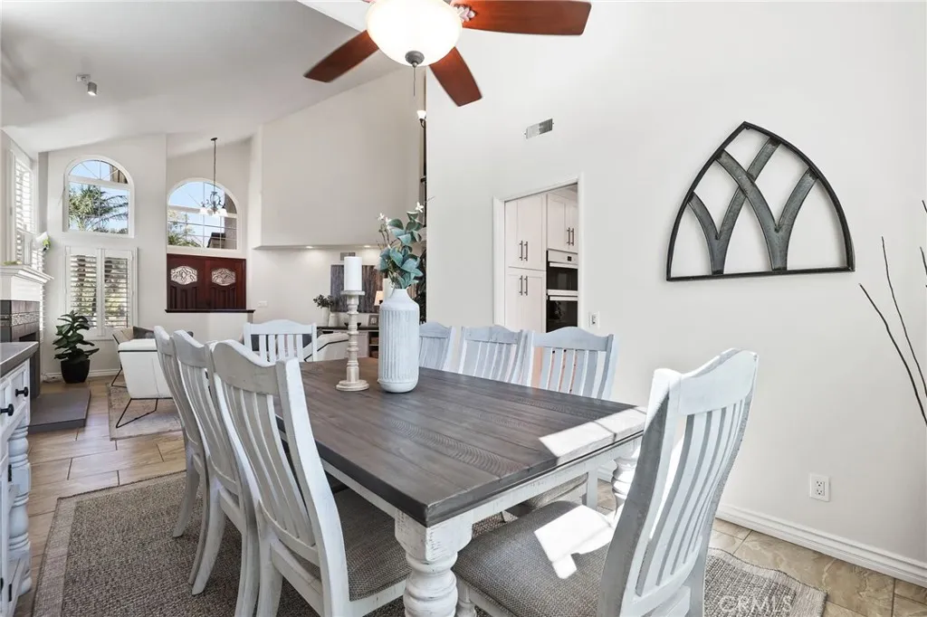 Tucked away on a private cul-de-sac in the prestigious guard-gated community of Rancho Cielo, this beautifully remodeled Brighton Glen home is where style, comfort, and serenity meet. From the moment you step through the door, you're greeted by soaring ceilings and streams of natural light across the living and dining room. Shutters frame each window, a cozy fireplace invites you to unwind,and the elegant dining space features a ceiling fan with lightperfect for gatherings. At the heart of the home lies a kitchen thats as functional as it is breathtaking. Thoughtfully redesigned, featuring crisp white shaker cabinets, luxurious quartz countertops, a charming farmhouse sink, and a spacious center islandperfect for gathering with friends or prepping a quiet dinner. Recessed lighting sets the mood, while built-in appliances add a sleek, modern touch. The kitchen opens seamlessly into the inviting family room, where tile flooring, elegant shutters, and a custom coffee bar with matching quartz counters and generous storage create a space made for connection and comfort. Downstairs also features a chic half bath with an Italian glass custom mirror and a well-designed laundry room with built-in cabinetry. Upstairs, you'll find three spacious secondary bedrooms, each withvaulted ceilings, luxury vinyl flooring, shutters, ceiling fans with lights, and mirrored sliding closet doors. The upgraded secondary bathroom boasts a double-sink vanity with white shaker cabinets, custom hardware, recessed lighting, tile floors, a tub/shower combo, and an Italian glass custom mirror. The primary