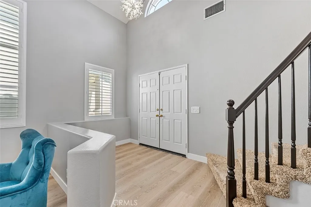 HUGE PRICE IMPROVEMENT! Welcome to your new home in Melinda Heights. NO NOISE from the 241. Sellers will credit $10k toward stairs/upstairs flooring. This home is in a beautiful quiet neighborhood complete with rolling hills, parks, community pools, tennis and basketball courts, baseball and soccer fields, the beach club and lagoon and a slew of walking trails. This 4 bedroom home has a bedroom/office and full bathroom downstairs, 2 large bedrooms and a primary suite upstairs. Both the primary and hallway bathrooms have dual vanity sinks, primary bath has a separate tub and shower. The hallway bathroom has a tub/shower combo. There are stunning cathedral ceilings and an estate winding staircase as you enter the home. The home has newer wood shutters. Brand new engineered wood in all of the downstairs. The kitchen has an eat in area and is open to the family room complete with a fireplace. The family room leads to the low maintenance, small backyard with a sparkling, river rock, 15 foot long pool, spa and relaxing waterfall, perfect for evenings under the stars. There is a separate laundry room, and a 3 car garage. The home is close to coveted schools, gorgeous parks, a club house, amazing restaurants, shopping, movie theaters and freeways both toll and the 5 and 405. This home has it all!