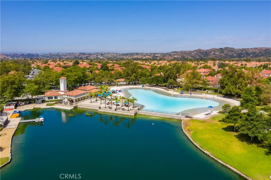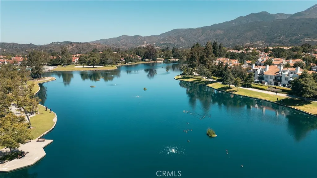 Just steps from the tranquility of Rancho Santa Margarita Lake, this beautiful residence could be yours in the coveted lakefront community of Brisa Del Lago I. The spacious single-level home, with no interior or entry steps, welcomes you with luxury vinyl plank flooring, and lots of natural light. The living room is equipped with a stylish stone-surround fireplace, perfect for cozy evenings, while sliding doors open to a large, private, west-facing patio framed by graceful palm trees, a serene space for watching the sunset. The kitchen has been tastefully remodeled with brand-new quartz countertops, a deep stainless steel sink, breakfast bar seating, and gas range. The generous primary suite offers doors to the patio, while the large secondary bedroom provides flexibility for guests, work, or relaxation. Hallway closet is large enough to be used as desk space. Additional highlights include in-unit full-size stackable laundry, plantation shutters throughout, and two garage spaces: one attached with direct access and another detached for added convenience or storage.Indulge in resort-style amenities including a community pool and spa with panoramic views of the Lake. Ideally located just 1 block from the highly rated Trabuco Mesa Elementary School and Trabuco Mesa Parks playground & tennis court. Named the safest city in Ca, Rancho Santa Margarita is also one of the most amenity-rich cities in Orange County. Residents enjoy access to the Beach Club, a splash pad, four Olympic-sized pools, fishing, 13 parks, picnic areas, sports courts, soccer fields, baseball diamonds, tennis