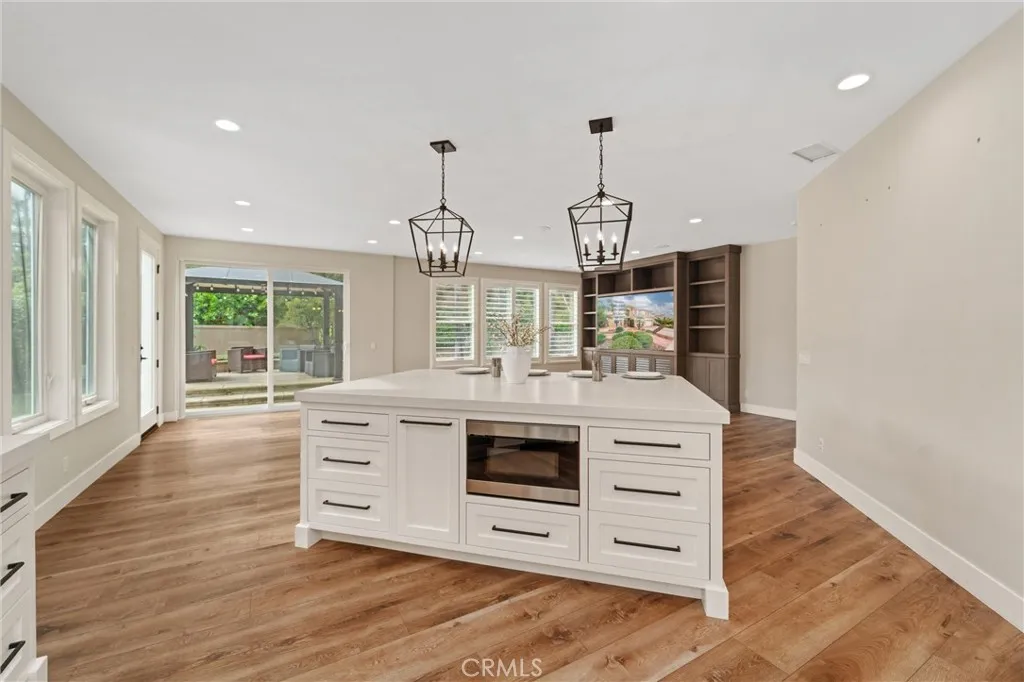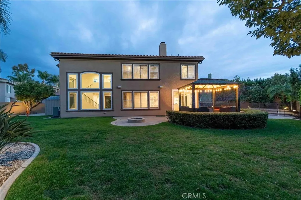 Ideally located at the end of a CUL-DE-SAC, this 4 BEDROOM, 4 BATH elegantly appointed home sits on a large lot with an EXPANSIVE BACKYARD featuring an inviting GATED SALT WATER POOL and SPA off of the FAMILY ROOM/KITCHEN. This AMAZING KITCHEN showcases a BUILT IN KITCHEN AID REFRIGERATOR and DISHWASHER, RECESSED LIGHTS and UNDER CABINET LIGHTING for all upper cabinets and open shelving. The 6 BURNER RANGE with GRIDDLE and DOUBLE OVEN boasts a designer backsplash and a POT FILLER over the STOVETOP. This GOURMET KITCHEN BOASTS a HUGE ISLAND with BREAKFAST BAR for 6, a BUILT IN MICROWAVE and storage cabinets including pull out trash. The KITCHEN SINK, with a view of the backyard pool and spa, is in an EXPANSIVE COUNTER TOP with a PLETHORA OF STORAGE CABINETRY, DUAL WINE REFRIGERATORS and a BUILT IN ICE MAKER. Across from the end of the long counter top is a SINK and PREP AREA adjacent to a large PANTRY WITH DRAWERS. The FORMAL LIVING/DINING ROOM off the entry reveals HIGH CEILINGS and EXPANSIVE WINDOWS revealing a BEAUTIFULLY LANDSCAPED BACKYARD. A FULL BATH and sought after MAIN FLOOR BEDROOM and versatile OFFICE/DEN complete the first floor. The journey continues upstairs to the PRIMARY BEDROOM, featuring a spa-like PRIMARY BATHROOM with a SOAKING TUB, DOUBLE SINKS, and a spacious WALK-IN CLOSET. Second floor additionally has two SECONDARY BEDROOMS each with their own EN-SUITE BATH, and a convenient UPSTAIRS LAUNDRY ROOM. Other home amenities include WIRING FOR SOUND throughout home, PAID OFF SOLAR, a TANKLESS WATER HEATER, WATER SOFTNER, a DOUBLE CAR GARAGE and a separate