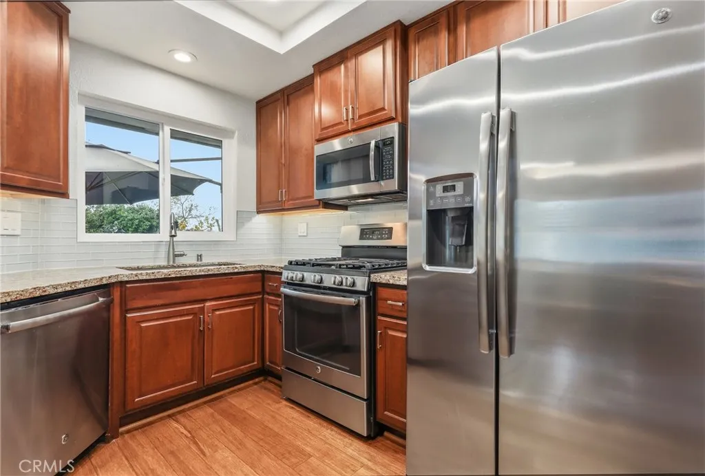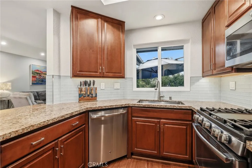 One of the rare units that offers privacy including a cul-de-sac location! This lovely carriage unit is located on a coveted corner with nobody living above or below! A spacious patio feels like an extension of the living room where you can enjoy the views of trees and spectacular sunsets. The sought-after Brisa Del Lago II community of Rancho Santa Margarita is moments from the lake, trails, shopping, dining, and the Santa Margarita Beach Club. Step into a bright living room featuring recessed lighting, a cozy fireplace, and a slider leading to your oversized front patioperfect for lounging or entertaining. The open floor plan flows seamlessly into the dining area and updated kitchen, which features cabinets and stainless steel appliances, granite countertops, subway tile backsplash, and an eat-in bar overlooking the dining room. The primary suite is a true retreat with a ceiling fan, spacious walk-in closet, and an updated en-suite bathroom with dual sinks and a glass-enclosed shower. Additional highlights include bamboo wood flooring, newer windows, plantation shutters, LED lighting, upgraded bathrooms, attic access with additional storage (a must-see bonus!), and inside laundry for convenience. This home also comes with a detached one-car garage plus an adjacent covered carport. Enjoy the beautiful community pool, proximity to ONeil Regional Park, and highly rated local schools including Trabuco Mesa Elementary and Santa Margarita Catholic High School. This home is truly amazingmove-in ready with upgrades throughout!