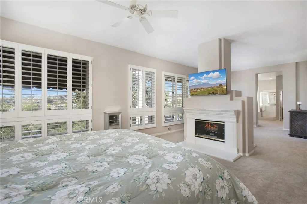 Be the DESTINATION HOME for family & friends while enjoying California Living at its finest in this Resort Style entertainers home. This home is located in the Prestigious Gated Community of Dove Canyon nestled against the Saddleback Mountains & perfectly positioned between 2 Fairways of the Private Jack Nicklaus Designed Golf Course. This stunning 5-Bedroom + Loft and 5 Bathroom home offers an open & airy floor plan embracing a blend of comfortable everyday living as well as the luxury of fabulous entertaining. Entering through the Double Doors to the Grand Foyer you are welcomed by the abundance of windows & French Doors that enhance the interior with warm sunshine all day. New Carpet, Marble Floors, Fresh Neutral Paint, Shutters, Ceiling Fans, Newer A/C, Furnace, Water Heater, Water Softener System & SOLAR are just a few of this homes upgrades. The high ceilings in the living & dining rooms are accented with a Fireplace, Custom Paint, Shutters & French Doors. The Gourmet Kitchen has a generous sized Breakfast Nook, beautiful Cherry Cabinets, Designer Tile, Center Island & ample counter space for creating your favorite culinary delights. The kitchen looks out to the F/R that has a Fireplace & French Door to the backyard. The Main Floor 5th bedroom has a walk in closet & is currently being used as a den complete with a cozy Fireplace & Custom Built-ins. The beautiful Sweeping Staircase leads to the Spacious Primary Bedroom with High Ceilings,Shutters, Ceiling Fan, Large Retreat area, Dual Sided Fireplace & Private Balcony with view of the golf course. The Primary Bathroom