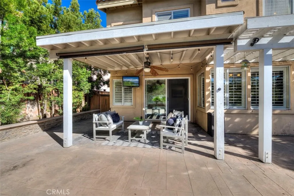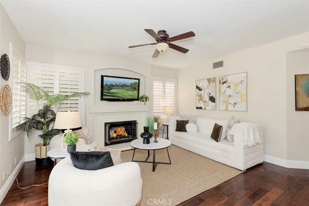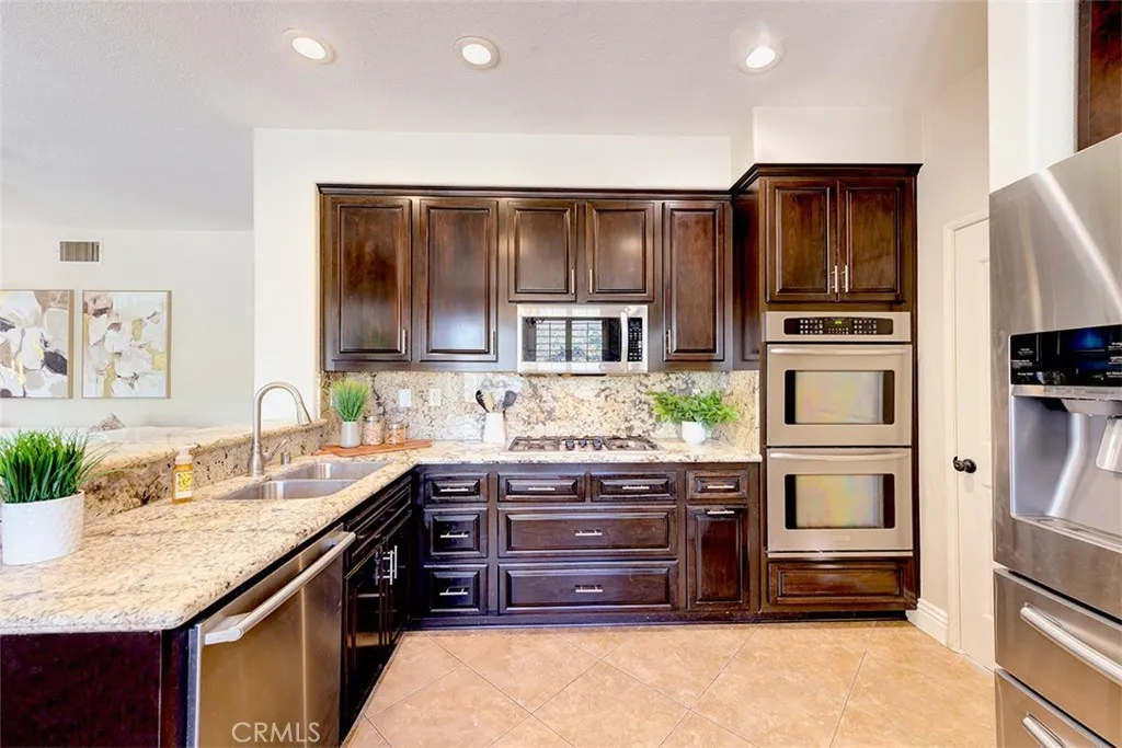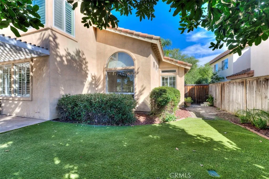 This stunning Melinda Heights residence in the desirable Estrella Vista community has been beautifully updated with designer finishes throughout, offering both style and functionality for todays modern living. Spanning approximately 2,400 sq. ft. on an expansive 5,700 sq. ft. lot, this home features 4 bedrooms and 3 baths, including a convenient downstairs bedroom and bath ideal for in-laws, guests or a private office. The impressive open floor plan welcomes you with soaring vaulted ceilings, abundant natural light, and rich hardwood floors that flow through the formal living and dining rooms. The chef-inspired kitchen has been tastefully remodeled with a new cabinetry piece featuring a built-in wine rack, granite countertops, stainless steel appliances, a 5-burner gas cooktop, and a double oven. A breakfast bar and casual dining area overlook the inviting family room with a cozy fireplace, creating the perfect space for gatherings. Upstairs, youll find three spacious bedrooms, including a luxurious primary suite with tray ceilings, a custom-organized walk-in closet, and a spa-inspired bathroom showcasing a mosaic-tiled walk-in shower and separate soaking tub. The private backyard, with no neighbors directly behind, has been thoughtfully designed for entertaining. Enjoy an extended covered patio, built-in BBQ with bar seating, sink, refrigerator, fire pit and fountain features, and a low-maintenance artificial grass area ideal for lounging or playing. Additional highlights include a three-car garage with freshly painted flooring, built-in cabinets, hanging storage racks, an