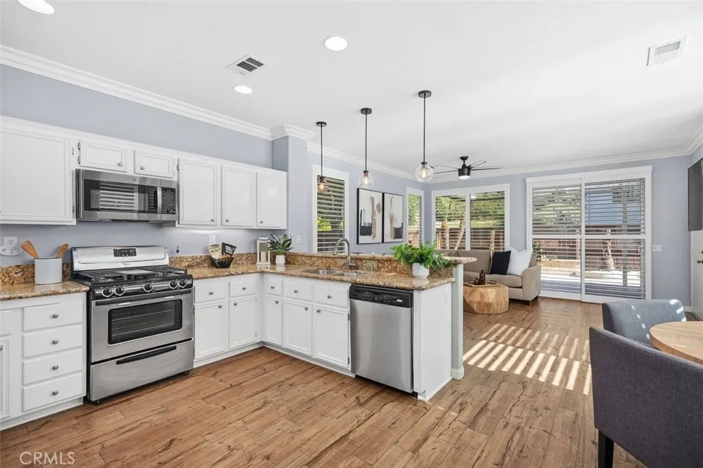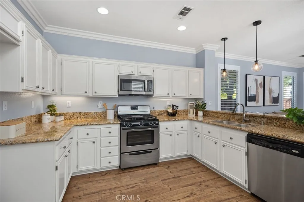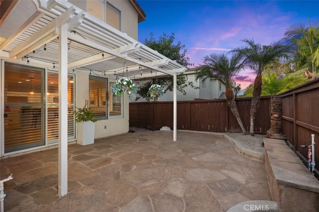 Welcome to 8 Tradition Lane, a well-maintained two-story home located in the desirable Las Flores community of Rancho Santa Margarita. The main level features wood flooring, crown molding, and a light-filled living room with a fireplace. The kitchen includes granite countertops, stainless steel appliances, and plenty of storage, opening to a casual dining area and family room with access to the backyard. Upstairs, youll find all four bedrooms, including the primary suite with vaulted ceilings, a walk-in closet, and bathroom with updated vanity with dual sinks, a soaking tub, and a separate shower. The secondary bedrooms are comfortably sized, and the full hallway bath has also been updated with modern finishes. Outside, the backyard offers easy to maintain landscaping, along with a covered patio area. The extended driveway is ideal for extra parking or a safe play space. Additional highlights include inside laundry, double-pane windows with shutters, and direct access to the attached two-car garage. Just a short distance to Las Flores Elementary and Middle Schools, local parks, trails, and community amenities like the pool, spa, and playgrounds.