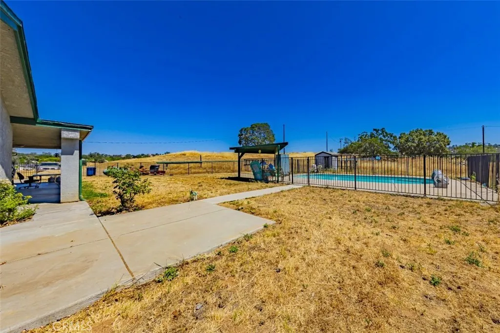 Enjoy you mini Ranch with over 9+ fenced acres for your hours and other farm animals. Great location on a knoll with Sierra Mountain views to take in. Over 2400 sq. ft. of spacious living, including an office or workout room right off of the garage. Having 4 bedrooms and 3 bathrooms, there is plenty of space for the family. Enjoy the benefit of having FREE Lifetime water from the local water system. To keep you cooler, take a dip in the large in-ground Pool and oversized back covered patio. Whole house Sun Run Solar that is leased, keeps you power bills way down, newer Tankless water heater and an oversized walk-in closet in the primary suite. Located just off the main road so as not to hear or see much of any traffic for the home is located off of a cul-de-sac.