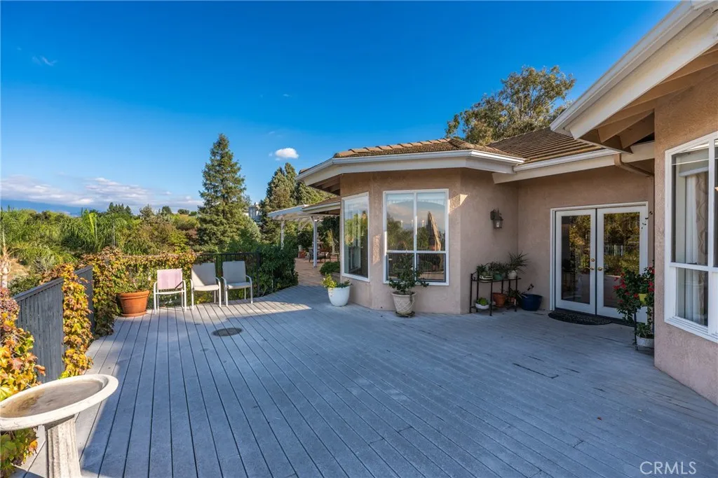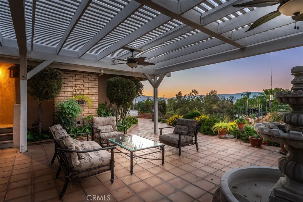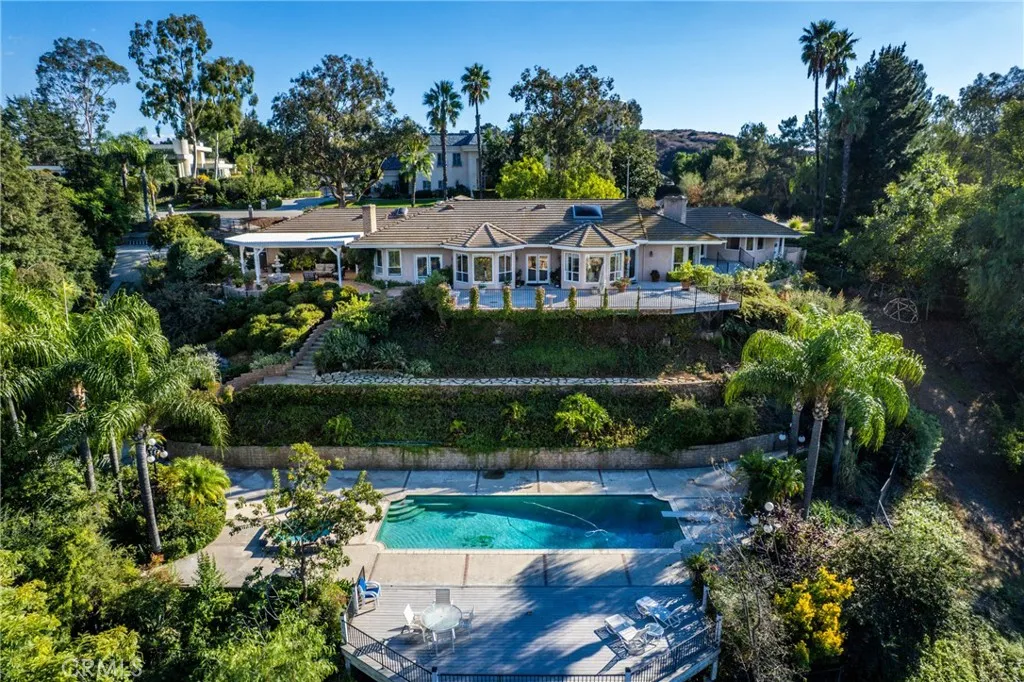Single-Story Redlands Estate with Pool, Spa & 180 Views on 1.5 Acres. Discover one of Redlands most stunning homes, an expansive single-story estate on 1.47 acres with sweeping 180-degree views of sunsets, mountains, and lush greenery. Enter through a contemporary grand portico with double leaded-glass doors into a formal entry with soaring cathedral ceilings, a refurbished skylight, and picture windows that flood the home with natural light, making the elegant crystal chandeliers shimmer. Several rooms have been freshly repainted, enhancing the homes timeless appeal. The entertainers floor plan flows effortlessly with open living and dining spaces, a handsome turret-style formal dining room, and a bright breakfast nook. The chefs kitchen boasts granite counters, a large island, walk-in pantry, sliding drawers, and Sub-Zero appliances including a refrigerator and dual-zone wine cooler. The in-law floor plan features two east-wing bedrooms, while the private west-wing primary suite offers a true retreat with a fireplace, walk-in closets, ensuite spa-style bathroom, and French doors opening to a private patio with a built-in spa. Step outside to a resort-inspired backyard designed for unforgettable gatherings. Highlights include a massive Trex deck, an oversized gated pool and spa, and a sunken courtyard with gazebothe perfect setting for outdoor dining, weddings, or private events. The grounds also feature upgraded landscaping, a circular driveway, generous RV parking with hookups, and a flourishing orchard with avocado, blood orange, grapefruit, peach, cherry, tangerine, an