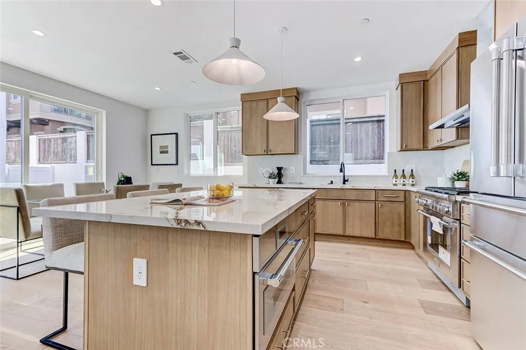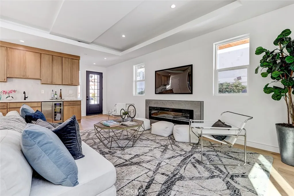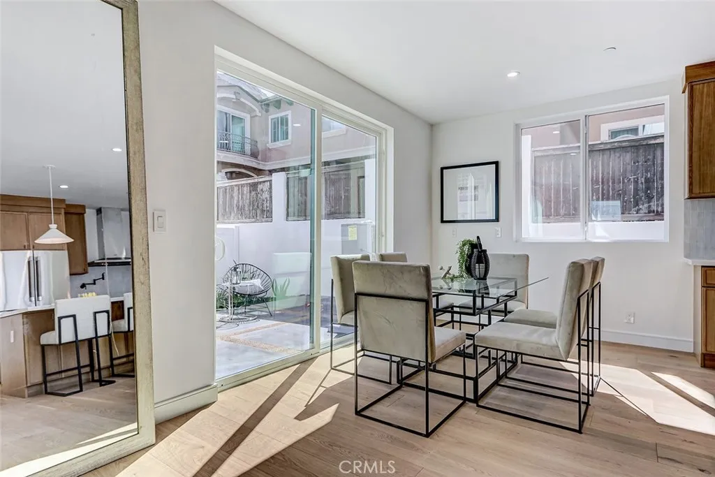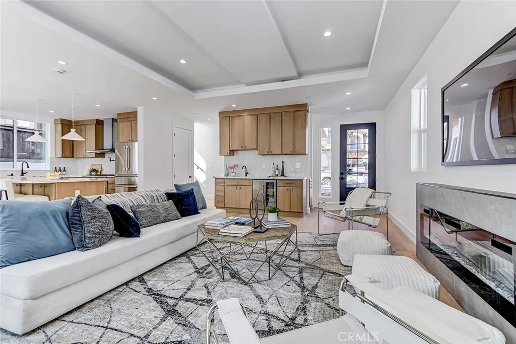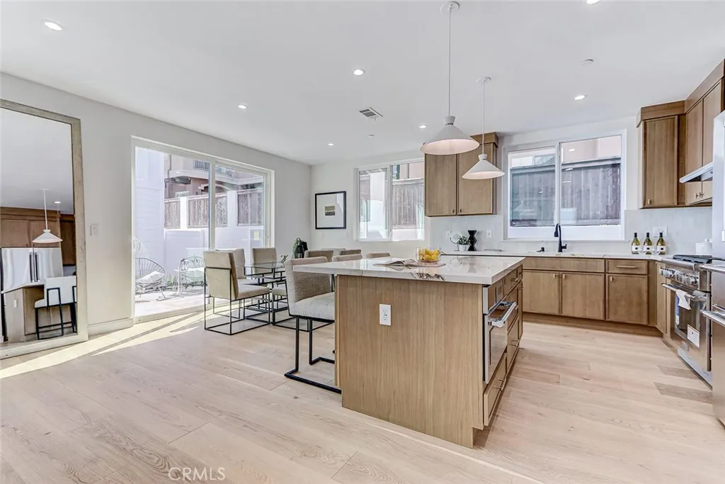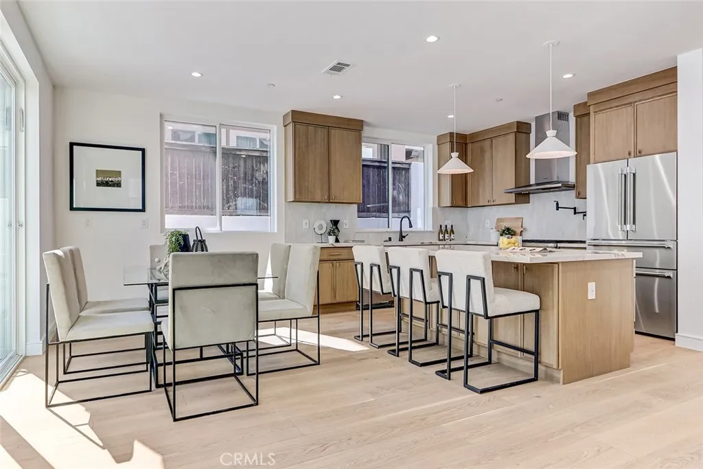New Construction. Detached townhome on the west side of North Redondo, within the Jefferson Elementary School district. This 4-bedroom, 4.5-bathroom residence offers 2,593 square feet with no shared walls and a private backyard for each unit. The main level features 10-foot ceilings, wide plank engineered wood flooring, and a bright, open layout. The kitchen is centered around a large island and equipped with Thermador appliances, including a 6-burner range, hood vent, and included refrigerator, along with custom slim shaker cabinetry in an oak finish. The living room includes a fireplace and a wet bar with beverage cooler. Upstairs, the primary suite offers a huge walk-in closet with built-ins, and a bathroom with dual vanities, soaking tub, walk-in shower, and separate water closet. Additional features include solar panels, Ring security system, central AC, Google Nest Thermostat, and a two-car garage with EV charging outlet, epoxy floors, and built-in storage. Well-positioned in North Redondo with convenient access to local schools, Hermosa Beach, the Redondo Beach dog park, and the ultimate quality of life that continues to draw people to the South Bay.
