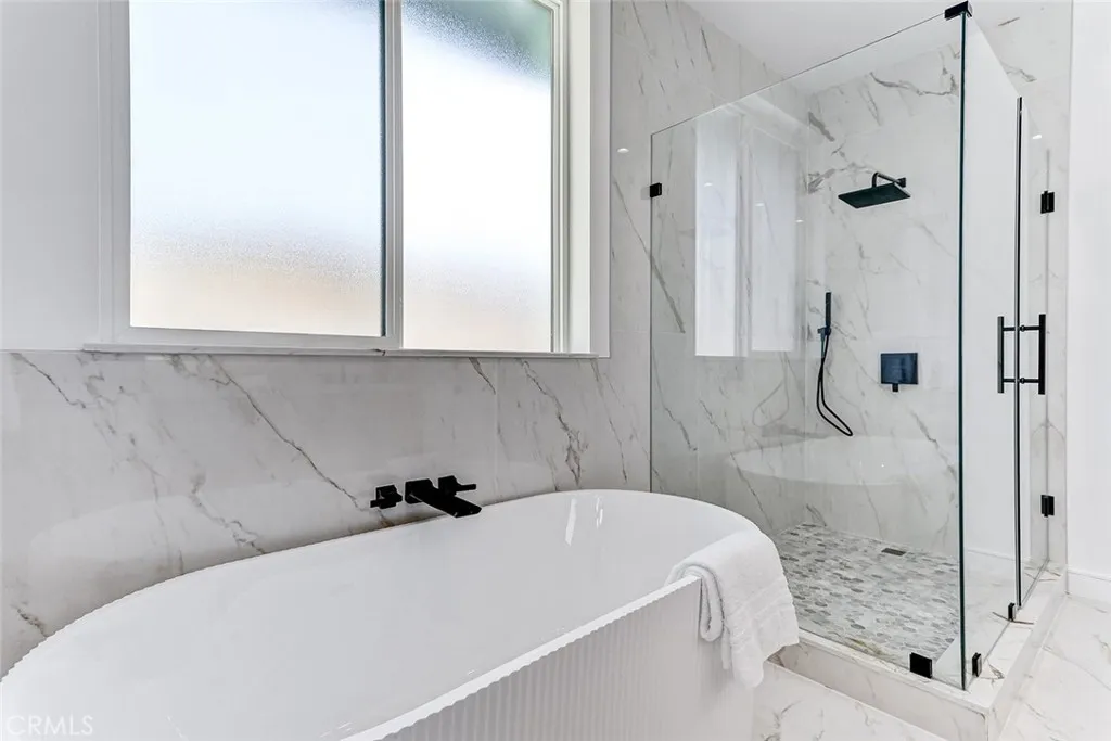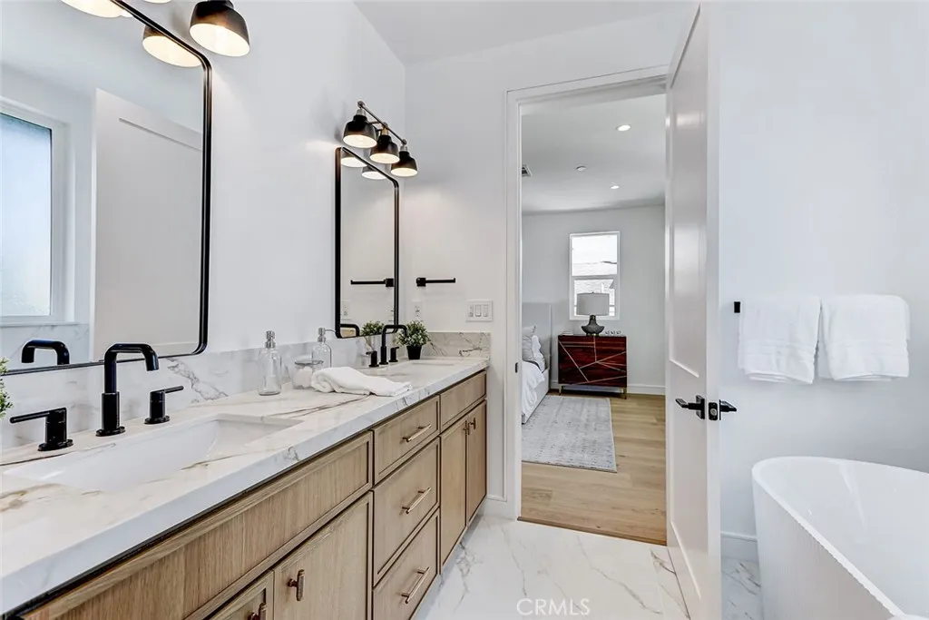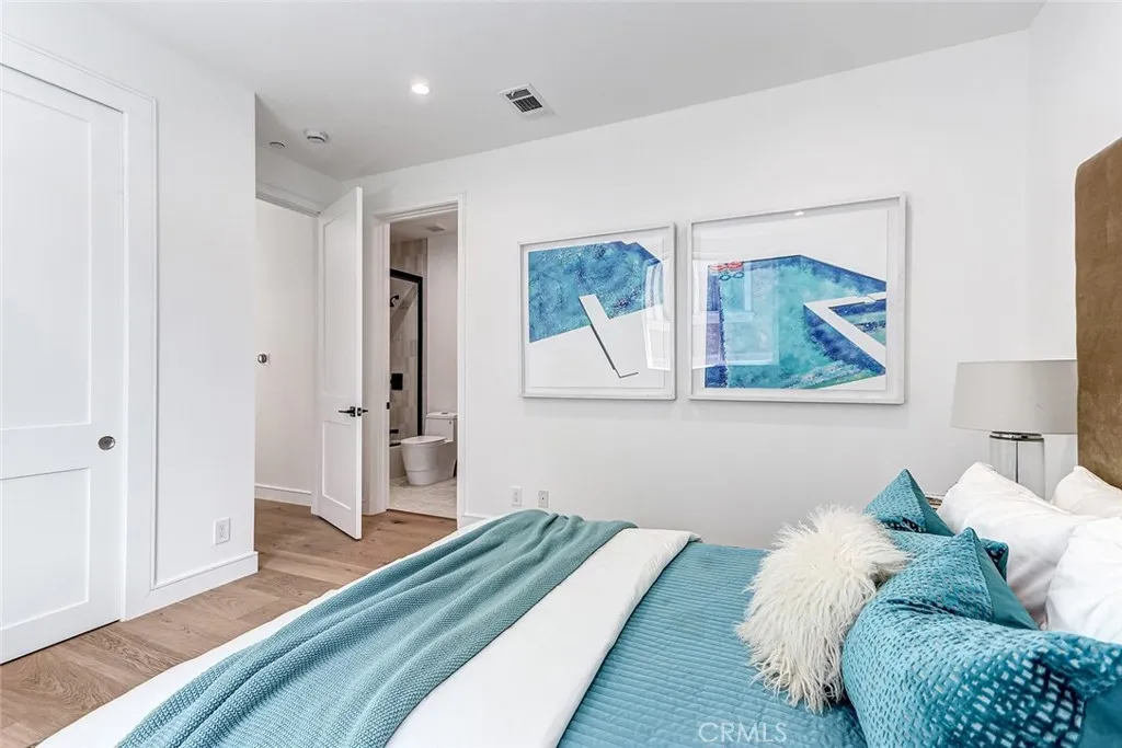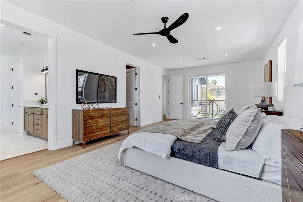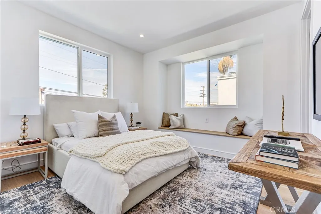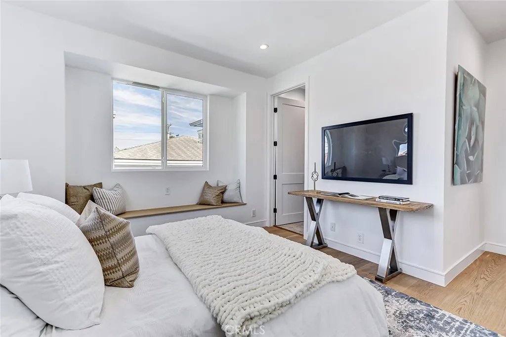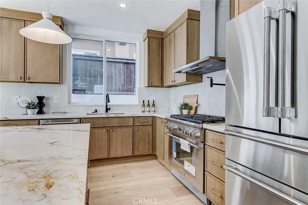 New Construction. Detached townhome on the west side of North Redondo, within the Jefferson Elementary School district. This 4-bedroom, 4.5-bathroom residence offers 2,593 square feet with no shared walls and a private backyard for each unit. The main level features 10-foot ceilings, wide plank engineered wood flooring, and a bright, open layout. The kitchen is centered around a large island and equipped with Thermador appliances, including a 6-burner range, hood vent, and included refrigerator, along with custom slim shaker cabinetry in an oak finish. The living room includes a fireplace and a wet bar with beverage cooler. Upstairs, the primary suite offers a huge walk-in closet with built-ins, and a bathroom with dual vanities, soaking tub, walk-in shower, and separate water closet. Additional features include solar panels, Ring security system, central AC, Google Nest Thermostat, and a two-car garage with EV charging outlet, epoxy floors, and built-in storage. Well-positioned in North Redondo with convenient access to local schools, Hermosa Beach, the Redondo Beach dog park, and the ultimate quality of life that continues to draw people to the South Bay.
