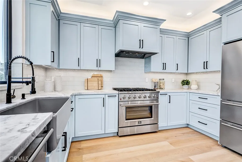 Welcome to 2604 Grant Ave #A, Redondo Beach a beautifully crafted, modern coastal home offering style, comfort, and smart living. This newly constructed residence is one of three luxury townhomes designed with thoughtful features and high-end finishes throughout. Unit A stands out with its private yard, stained exposed beams, vaulted ceilings, as well as a mezzanine giving it a spacious, airy feel. Inside, youll find scratch-resistant and waterproof flooring throughout ideal for families, pets, and carefree living. The open-concept kitchen boasts under-cabinet lighting, a farmhouse sink, gas stove and oven, microwave, dishwasher, refrigerator, and a sleek electric exhaust hood. Custom touches like backlit crown molding, a chandelier over the staircase, and mirrors pre-installed in every bathroom elevate the interior aesthetic. The primary suite features a large ceiling fan, Jack and Jill sinks, a standalone soaking tub, and a luxurious rain shower head. Every bedroom is pre-wired for wall-mounted TVs and ceiling fan installation, while the home is climate-controlled with a Nest thermostat system connected via WiFi for seamless temperature management. Enjoy cozy nights with remote-start gas fireplaces and entertainment-ready spaces including a large flat-screen TV already installed. The roof deck is fully prepped with gas lines, sink, and electrical for a future grill or firepit, making it the perfect spot for sunset gatherings. This unit includes a 2-car garage plus additional covered parking, Ring camera system, EV charger-ready outlet, automatic garage door opener, and