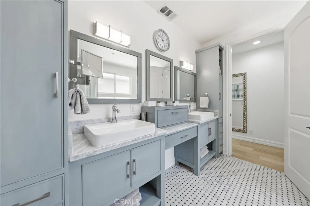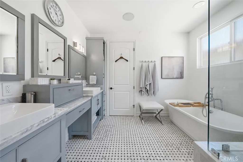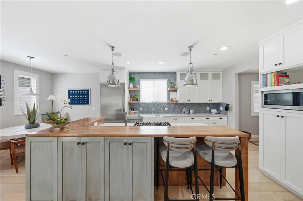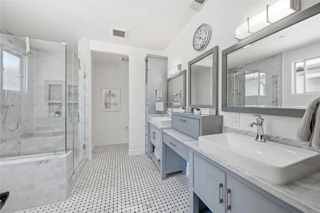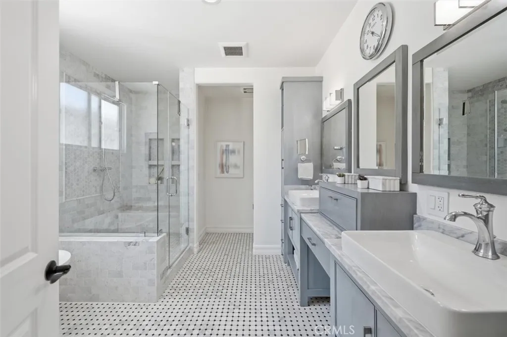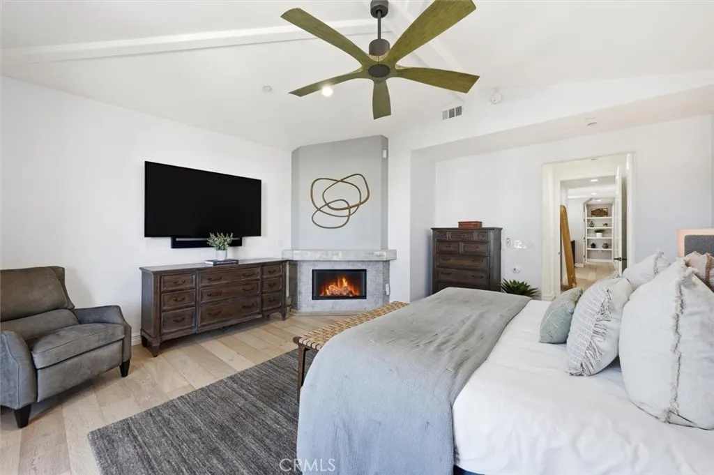 Perched on a coveted South Redondo hillside, this stunning Mediterranean-Spanish home offers elevated coastal living with breathtaking ocean views and an abundance of natural light. Seamlessly blending timeless architectural charm with modern finishes, this 3,300+ square-foot residence is both sophisticated and inviting. The home features five bedrooms and five bathrooms, including a private first-floor en-suite perfect for multi-generational living or hosting guests. Entertain effortlessly in the grand open-concept chefs kitchen, complete with a dramatic two-tiered island, custom cabinetry, generous storage, and a stylish herringbone backsplash that adds texture and character. The kitchen flows directly into the spacious family room, making it ideal for gatherings. Upstairs, a bright corner nook serves as a home office or cozy reading space. The luxurious primary suite boasts dual walk-in closets, a spa-like bathroom for two, a private fireplace, and a balcony showcasing serene ocean vistas. Two additional en-suite bedrooms and a Jack-and-Jill bath with built-in closets ensure comfort and convenience for family and guests alike. This home features owned solar panels, significantly reducing electricity costs. Step outside to a rare, oversized backyardperfect for entertaining, play, or creative customization. Above it all, the rooftop deck offers sweeping 180-degree coastline views, providing a front-row seat to stunning Pacific sunsets. South Redondo Beach is renowned for its natural beauty, award-winning schools, wide sandy beaches, and exceptional dining, shopping, and en