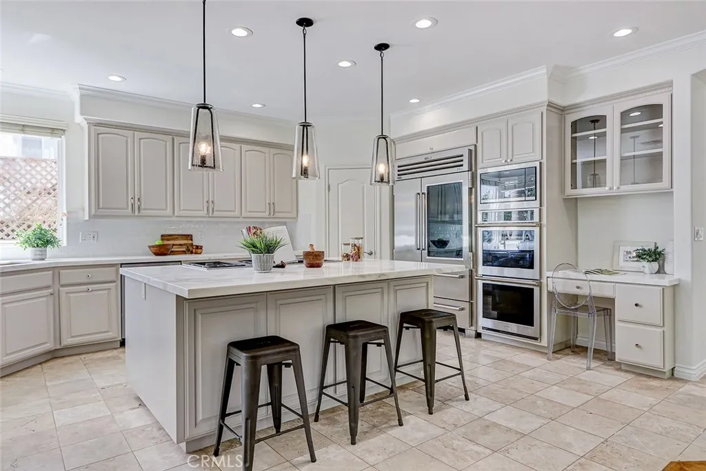 This beautiful and spacious upper Riviera home is on a prime corner lot and offers exceptional elegance, and a coveted coastal lifestyle. This one-of-a kind Mediterranean/Spanish residence was built in 1999 from the ground up and is thoughtfully designed for both everyday living and refined entertaining. A grand foyer welcomes you in and sets the tone with soaring ceilings and an abundance of natural light. The formal living room with fireplace provides a warm and inviting space, while the expansive great roomalso with a fireplaceflows seamlessly into the heart of the home. A dedicated dining room offers the perfect setting for gatherings both intimate and large. The newly remodeled kitchen is beautifully appointed with a Sub-Zero refrigerator, a generous center island with seating, and a bright breakfast area overlooking the private backyardideal for indoor-outdoor living. Upstairs, the huge primary suite serves as a true retreat, featuring its own fireplace, a private balcony overlooking the yard, an oversized walk-in closet, a luxurious two-person shower, and a spa-like soaking tub. Three additional upstairs bedrooms include one with an en-suite bath, while the other two share a Jack-and-Jill bathroom and each enjoy their own private balconies. A fifth bedroom on the main level is currently configured as a custom office with built-in cabinetry and desks. Additional highlights include hardwood flooring throughout most of the home, central air conditioning, and a functional, flexible floor plan. The lush and private backyard offers both grassy and tiled areas, perfect for