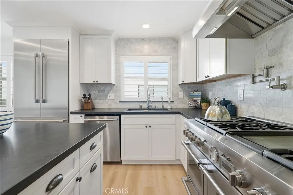 Back on the market! This is a rare opportunity to own an exceptional, fully remodeled end-unit townhome in the prime South Redondo Beach location, 1 block to the sand and a short stroll to the Village with a HUGE PRIVATE YARD AND PATIO! Offering unparalleled indoor/outdoor living this close to the beach for a townhome, this residence features an expansive 1,400 sq ft private landscaped yard and patio, perfect for pets, kids, and entertaining. With 1903 sq ft of indoor living space, this residence lives like a freestanding homesharing only one wall and offering ample light and privacy. The lower level includes direct access to a 2-car garage with plenty of storage and a 220V EV outlet. Upstairs, the split-level living and dining areas feature 10-ft ceilings, a cozy gas fireplace, and French doors that open to the outdoor living area, creating a seamless flow. The heart of the home is the fully remodeled chefs kitchen, outfitted with top-of-the-line Thermador professional series appliances, including a 6-burner dual-fuel range, double oven/steamer, soapstone countertops, custom cabinetry, and a built-in breakfast nook with table and storage ideal for families and the culinary enthusiast who likes to host. Additional upgrades include new flooring throughout, plantation shutters, custom closets, designer paint inside and out, a new heater, new skylights, and thoughtful coastal-inspired finishes. Notably, this cozy 8-unit, two-building complex boasts modest HOA fees and a responsive and helpful board. They recently completed an extensive exterior painting and upgrade. The commun