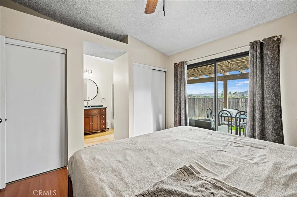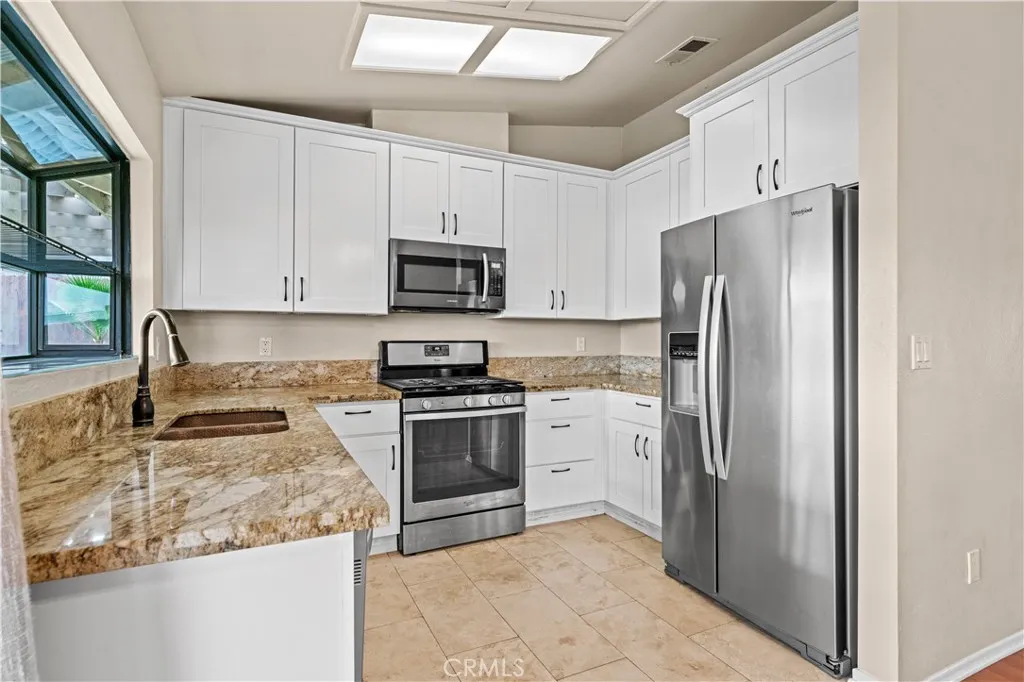 Move-in ready, a single-story SFR under $600K with great curb appeal in a beautiful neighborhood that exemplifies Prive of Ownership. This 2 Bedroom 2 Bath home offers an open floorplan, custom paint and wood laminated flooring throughout. updated kitchen features white cabinetry, gorgeous granite countertops, stainless steel appliances and IS opened to the dining area. The living room has vaulted ceilings with skylights and a brick fireplace. Both bedrooms are large and have ceiling fans, and the primary bedroom has a sliding door to the backyard, 2 closets, and a private bathroom. Enjoy the fully fenced-in, private backyard with beautiful views of the foothills, and a built-in pergola to relax under. You will have 2-car garage with a full-size driveway and plenty of visitors parking spots in the community. It is conveniently located near schools, shopping and dining, and easy access to the 91 and 15 Freeways. A great, affordable starting home or an excellent home to retire into.