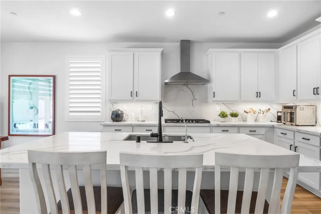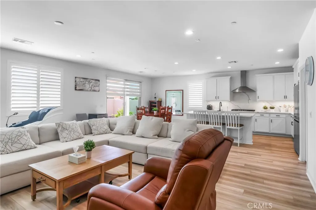 Nestled within the prestigious gated community of Highland Grove, 12939 Big Valley Court presents a sophisticated single-story lifestyle in the highly sought-after "Exeter" floor plan. This 2023-built residence offers 2,304 square feet of meticulously designed living space, characterized by nine-foot ceilings, luxury engineered laminate flooring, and an open-concept layout that seamlessly integrates formal and casual living areas. At the heart of the home, the gourmet kitchen serves as a culinary masterpiece, featuring designer-upgraded quartz/granite countertops and backsplash, a generous center island, premium stainless-steel appliances, and a substantial walk-in pantry. The accommodation includes three spacious bedrooms and three bathrooms, complemented by a versatile flex bonus room that easily adapts to a professional home office, bedroom, or fitness suite. Engineered for modern sustainability, the property is equipped with a fully purchased solar system with battery backup, a tankless water heater, and integrated smart home technology. The exterior featuring a covered patio and professional lush landscaping perfect for year-round enjoyment. Community amenities including a sparkling community swimming pool, spa, fire pit, cabana and a playground for children, creating the perfect balance of relaxation and recreation. This exceptional home offers a perfect balance of luxury and convenience, positioned just minutes from the 91 and 15 freeways and premier local amenities.