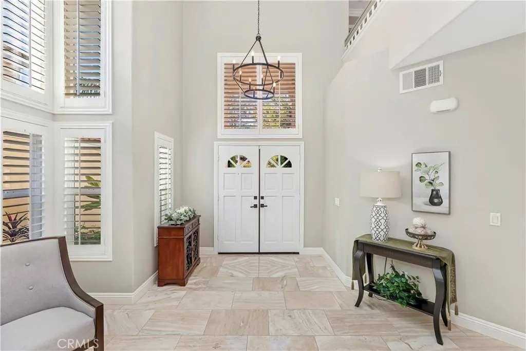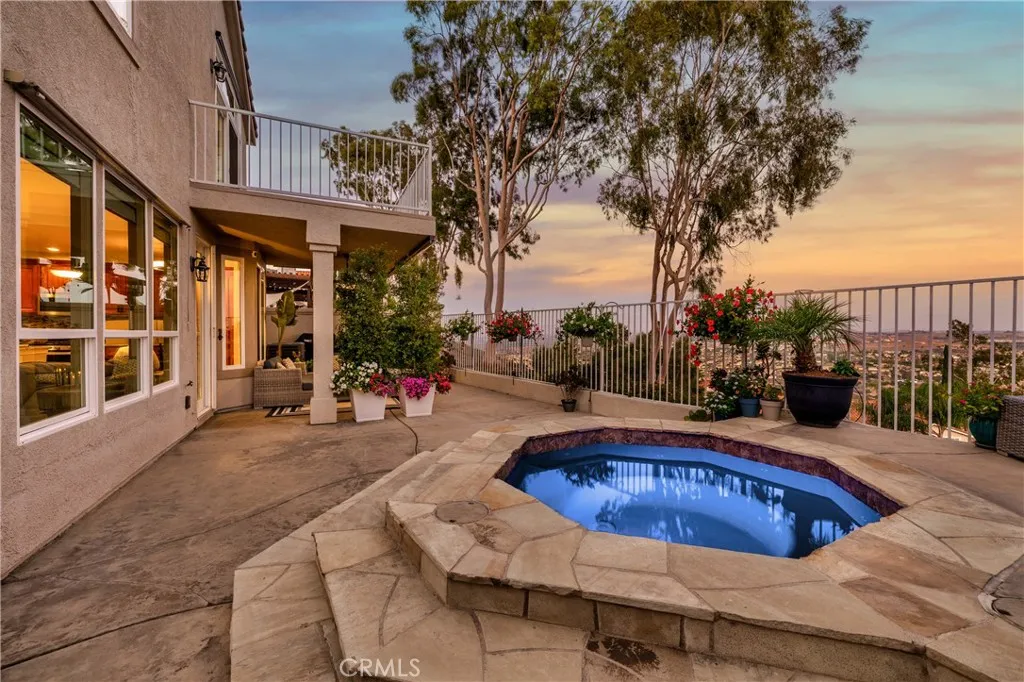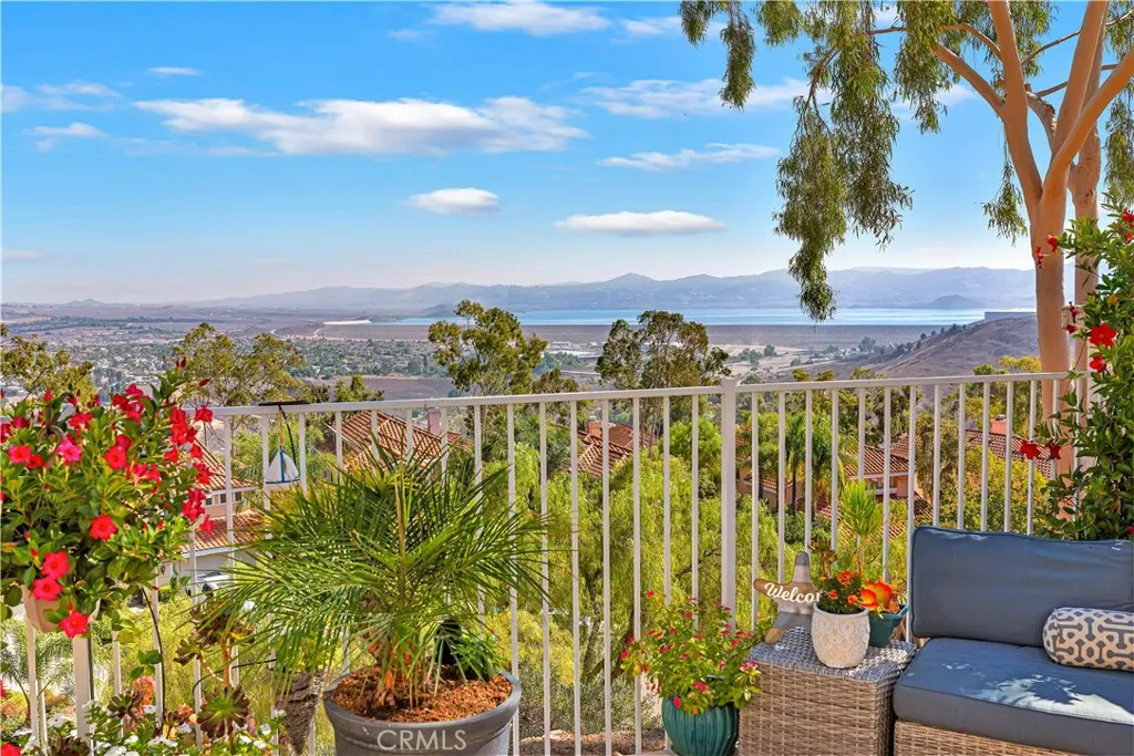 >>> This home is TRULY special and something you MUST see for yourself to believe. <<< This beautifully upgraded Lake Hills residence gives you the feel of a Pottery Barn showroom and showcases some of the best panoramic views of Lake Mathews that Lake Hills has to offer. With 4 bedrooms, 2.5 bathrooms, and 2,089 SqFt of refined living space, this home blends comfort and sophistication in every detail. Step inside to a dramatic entry where sky-high ceilings, crown moulding, and wide-plank baseboards frame textured travertine flooring and soft modern grey walls bathed in natural light. The kitchen is a true showpiece, featuring stainless steel LG Suite appliances, granite countertops, soft-close cabinetry, and a stylish backsplash all opening to the family room anchored by a stacked-stone fireplace and expansive lake views that will WOW! even the most discerning critics. Upstairs, the primary suite offers a peaceful retreat with its own breathtaking view of the lake -- imagine waking up to that every morning!! -- a walk-in shower, and a jacuzzi tub perfectly positioned against the window to soaking those views. Additional highlights include new carpet with upgraded padding, plantation shutters, Milgard double-pane windows, a QuietCool whole house fan, recessed lighting throughout, and a roof tune-up that was conducted in 2023. The backyard invites relaxation with an in-ground jacuzzi accented by color LED lighting, while stucco privacy walls ensure a serene outdoor escape. This Lake Hills home captures the perfect balance of elegance, comfort, and California livingwith views
